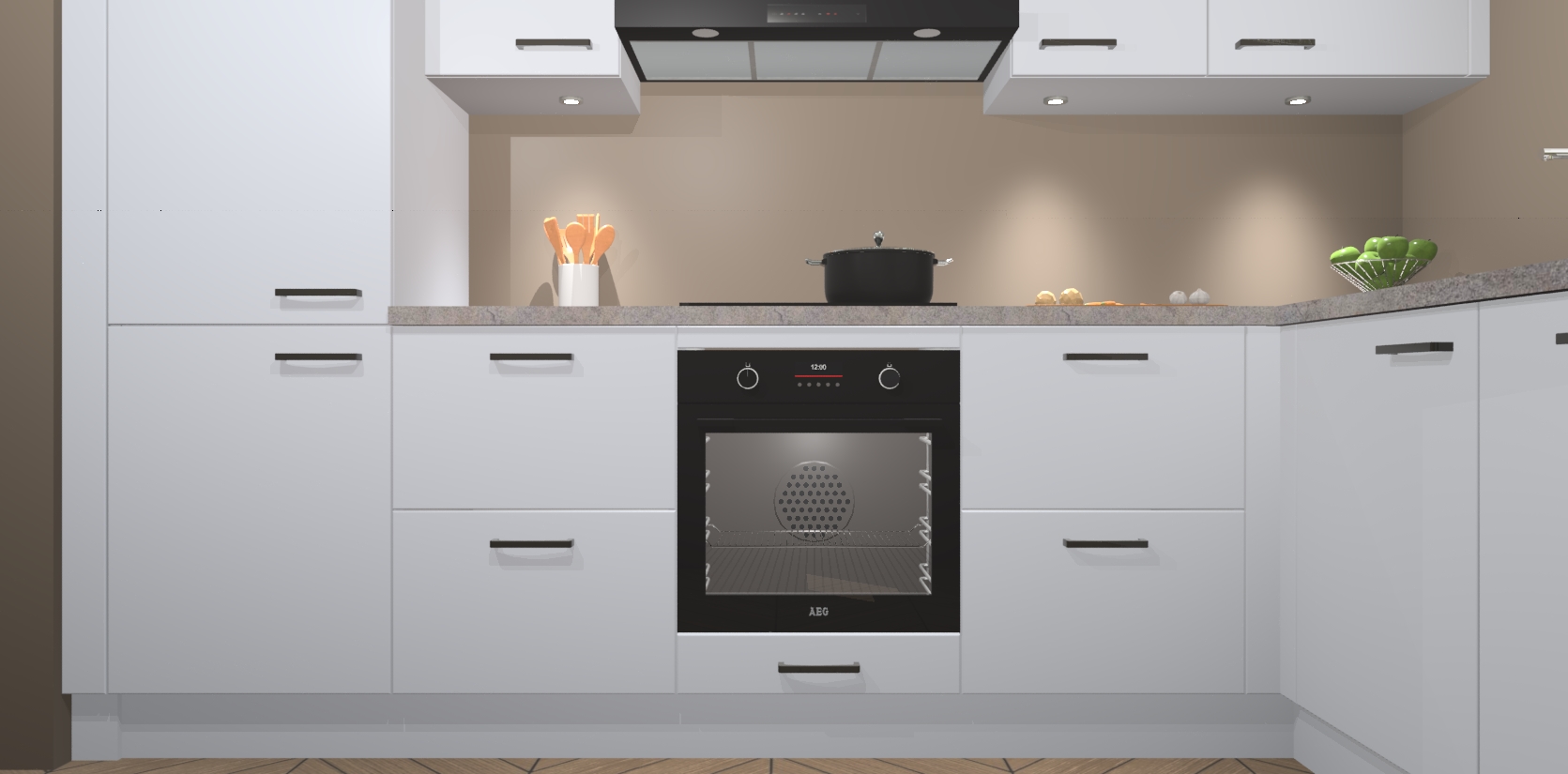 De Sneeuwwitte keuken Geneve is uitgerust met 5 inbouwapparaten - een oven, inductiekookplaat, afzuigkap, vaatwasser en koelkast - voor al uw kook- en bewaarbehoeftes. U kunt deze apparaten desgewenst eenvoudig upgraden naar AEG of de oven omruilen voor een combimagnetron na het plaatsen van uw bestelling. En met de soft close deuren, voldoende opbergruimte en kasten die voorgemonteerd worden geleverd, bent u in een mum van tijd klaar om heerlijke maaltijden te bereiden!