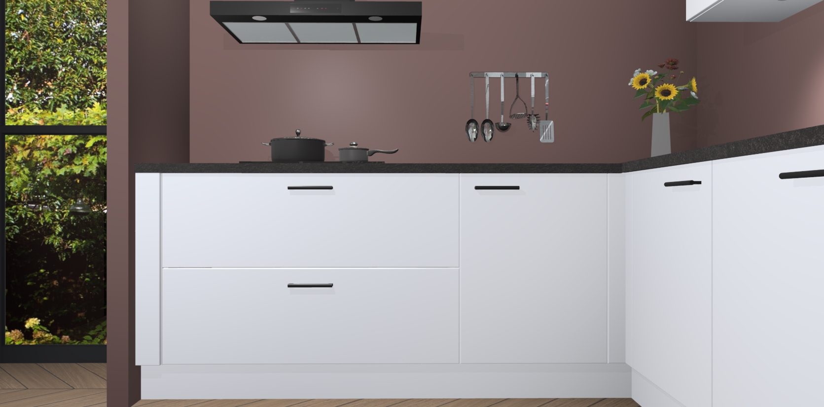 Inclusief plinten, stelpoten en werkblad