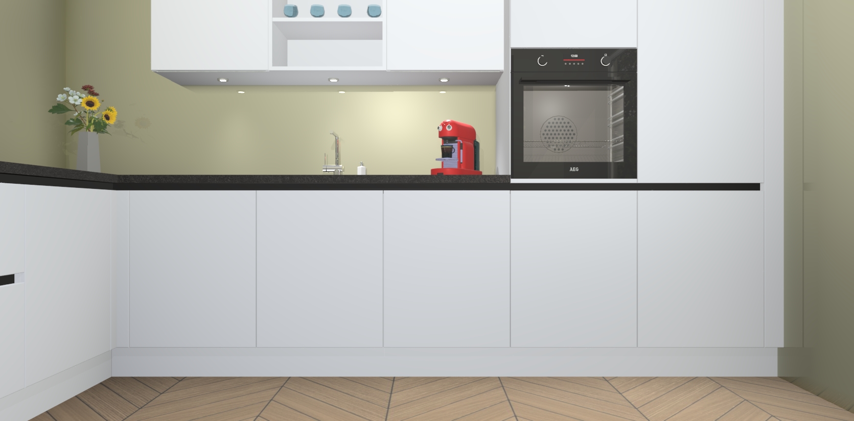 Inclusief plinten, stelpoten en werkblad