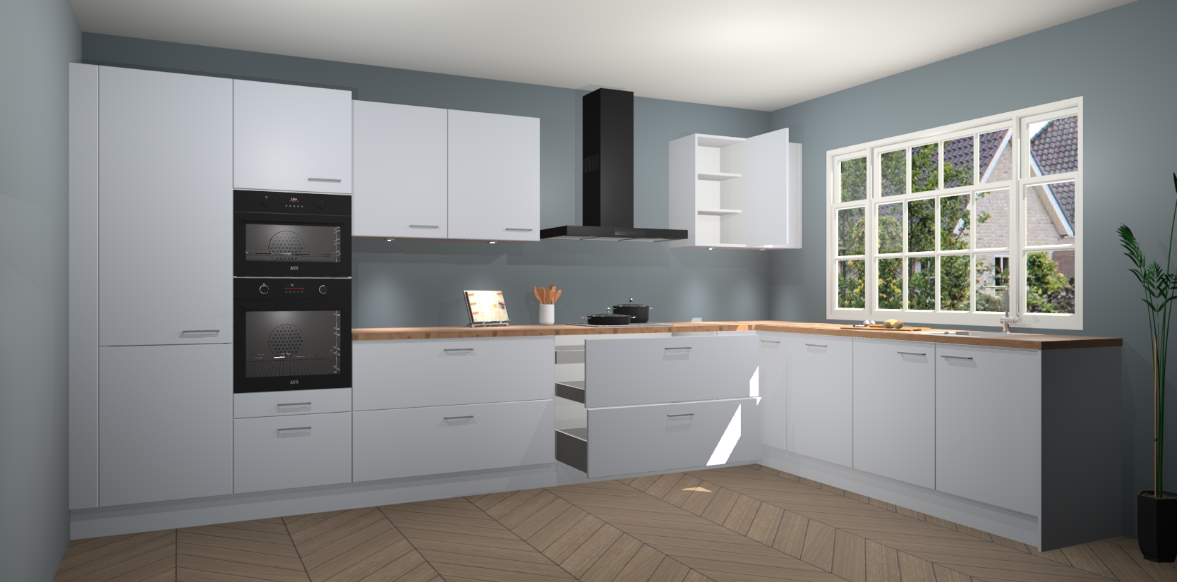 Kom dichtbij de perfecte keuken van uw dromen met de sneeuwwitte keuken Graz. Met een prachtige houtlook en eigentijds ontwerp, straalt deze keuken warmte en sfeer uit. Of u nu liefhebber bent van traditionele of moderne stijlen, er is genoeg ruimte om aan al uw behoeften te voldoen.