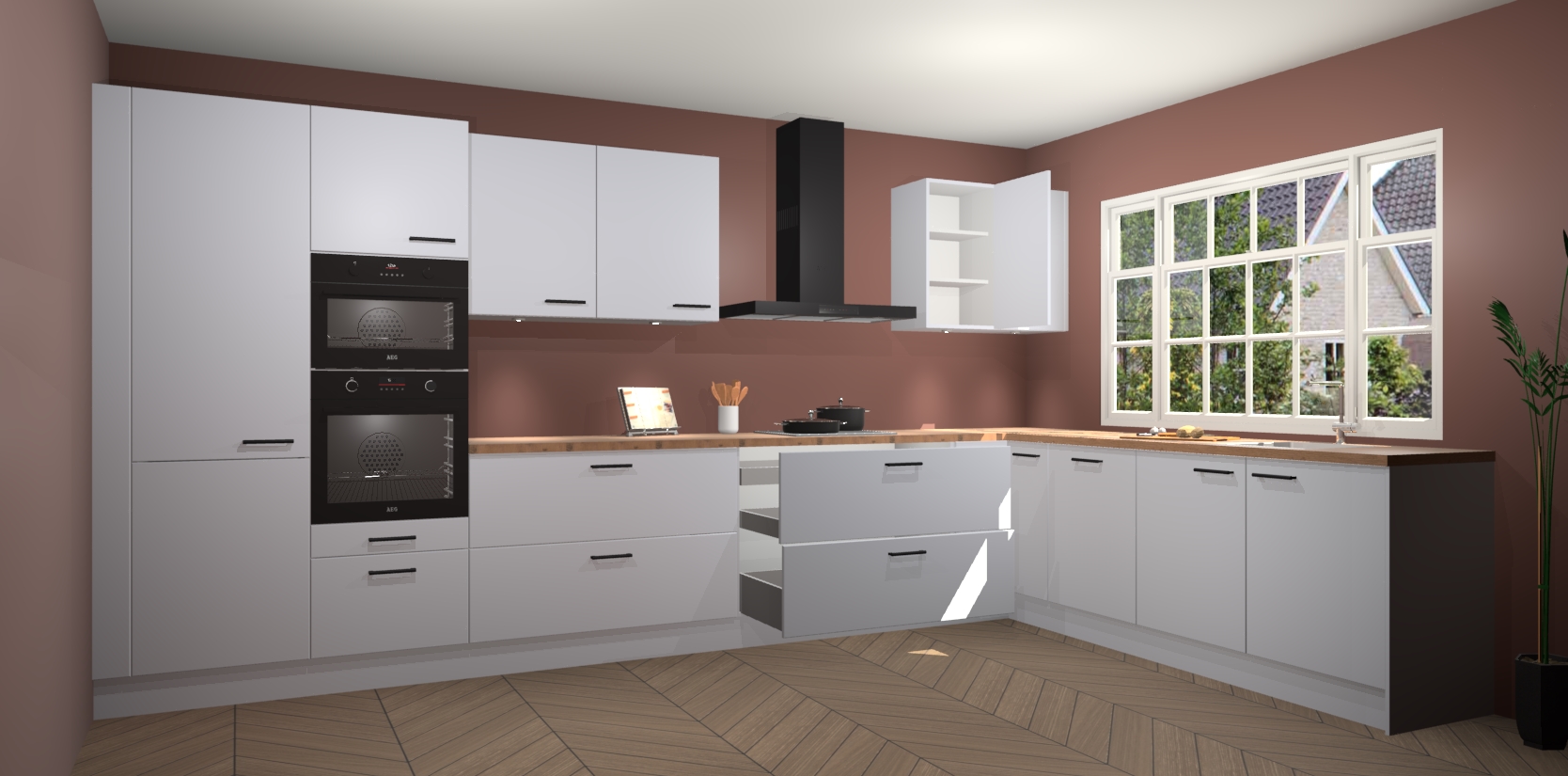 Inclusief plinten, stelpoten en werkblad