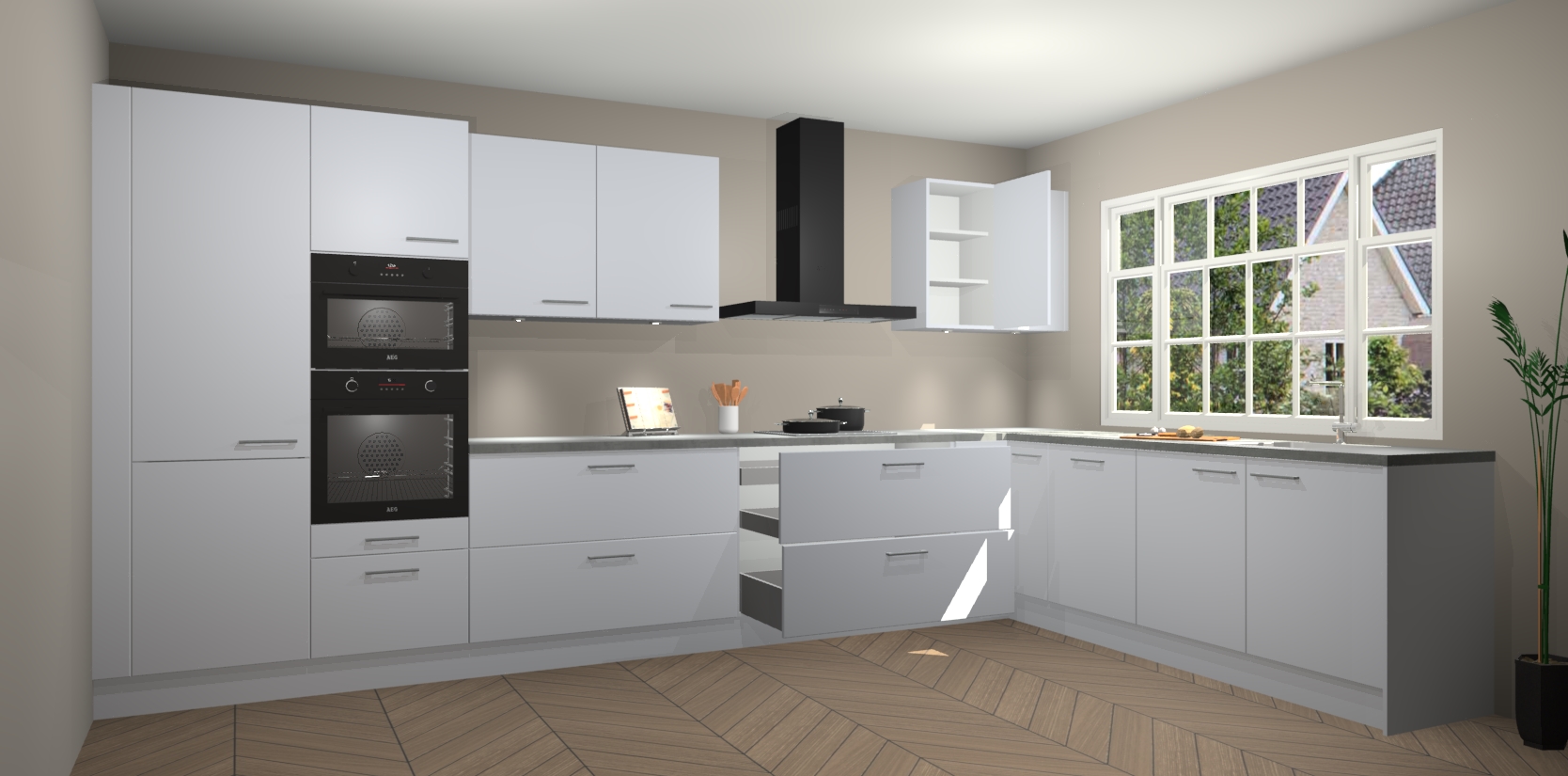 Kom dichtbij de perfecte keuken van uw dromen met de sneeuwwitte keuken Graz. Met een prachtige houtlook en eigentijds ontwerp, straalt deze keuken warmte en sfeer uit. Of u nu liefhebber bent van traditionele of moderne stijlen, er is genoeg ruimte om aan al uw behoeften te voldoen.