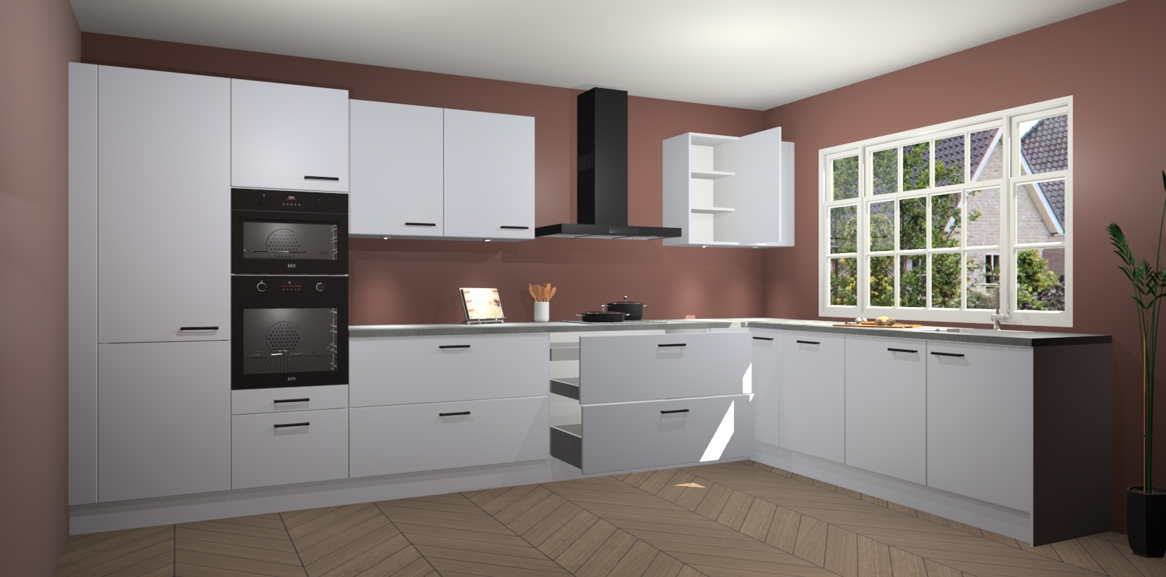 Kom dichtbij de perfecte keuken van uw dromen met de sneeuwwitte keuken Graz. Met een prachtige houtlook en eigentijds ontwerp, straalt deze keuken warmte en sfeer uit. Of u nu liefhebber bent van traditionele of moderne stijlen, er is genoeg ruimte om aan al uw behoeften te voldoen.
