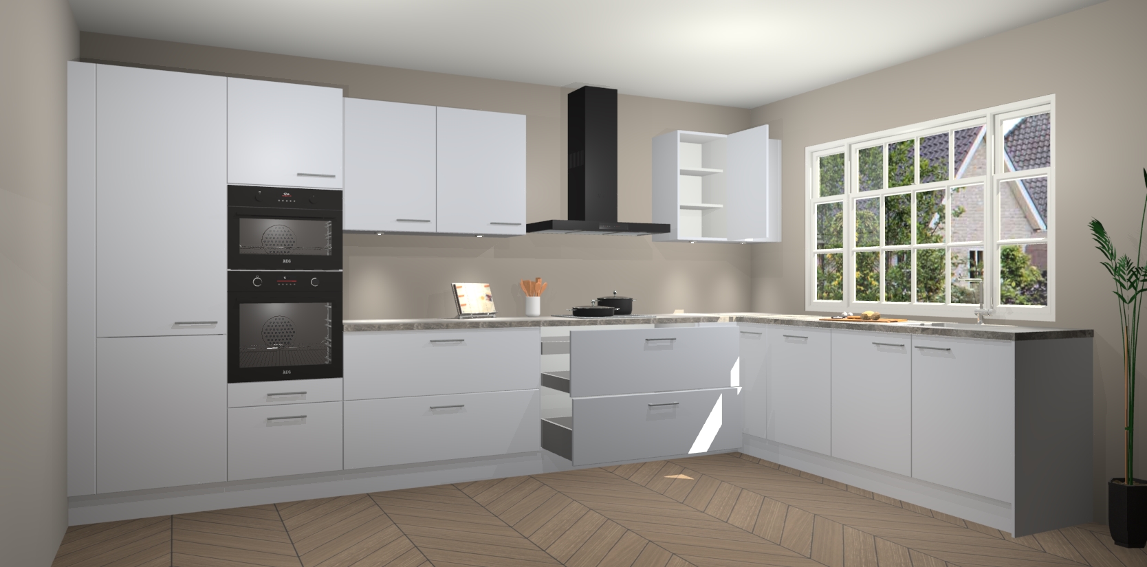 Kom dichtbij de perfecte keuken van uw dromen met de sneeuwwitte keuken Graz. Met een prachtige houtlook en eigentijds ontwerp, straalt deze keuken warmte en sfeer uit. Of u nu liefhebber bent van traditionele of moderne stijlen, er is genoeg ruimte om aan al uw behoeften te voldoen.