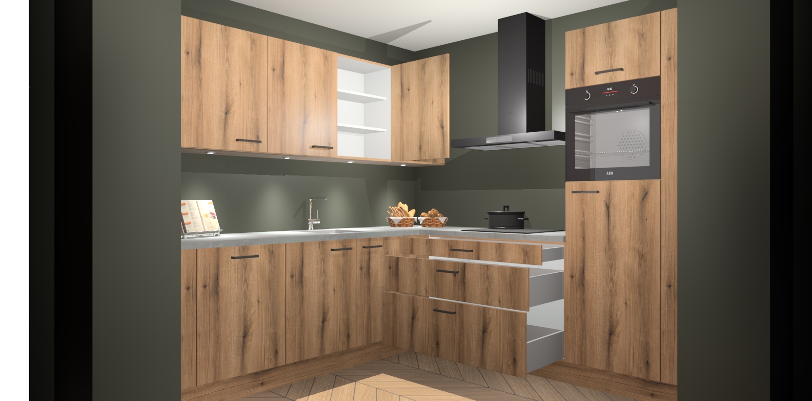 Kom dichtbij de perfecte keuken van uw dromen met de sneeuwwitte keuken Graz. Met een prachtige houtlook en eigentijds ontwerp, straalt deze keuken warmte en sfeer uit. Of u nu liefhebber bent van traditionele of moderne stijlen, er is genoeg ruimte om aan al uw behoeften te voldoen.