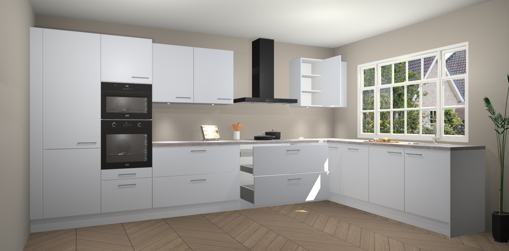 Inclusief plinten, stelpoten en werkblad