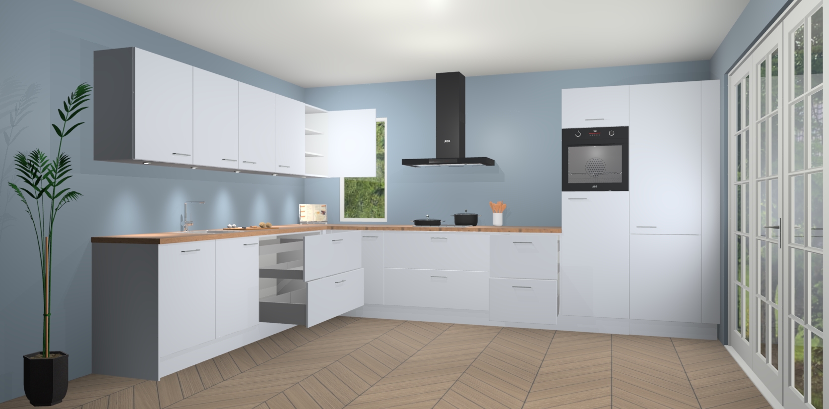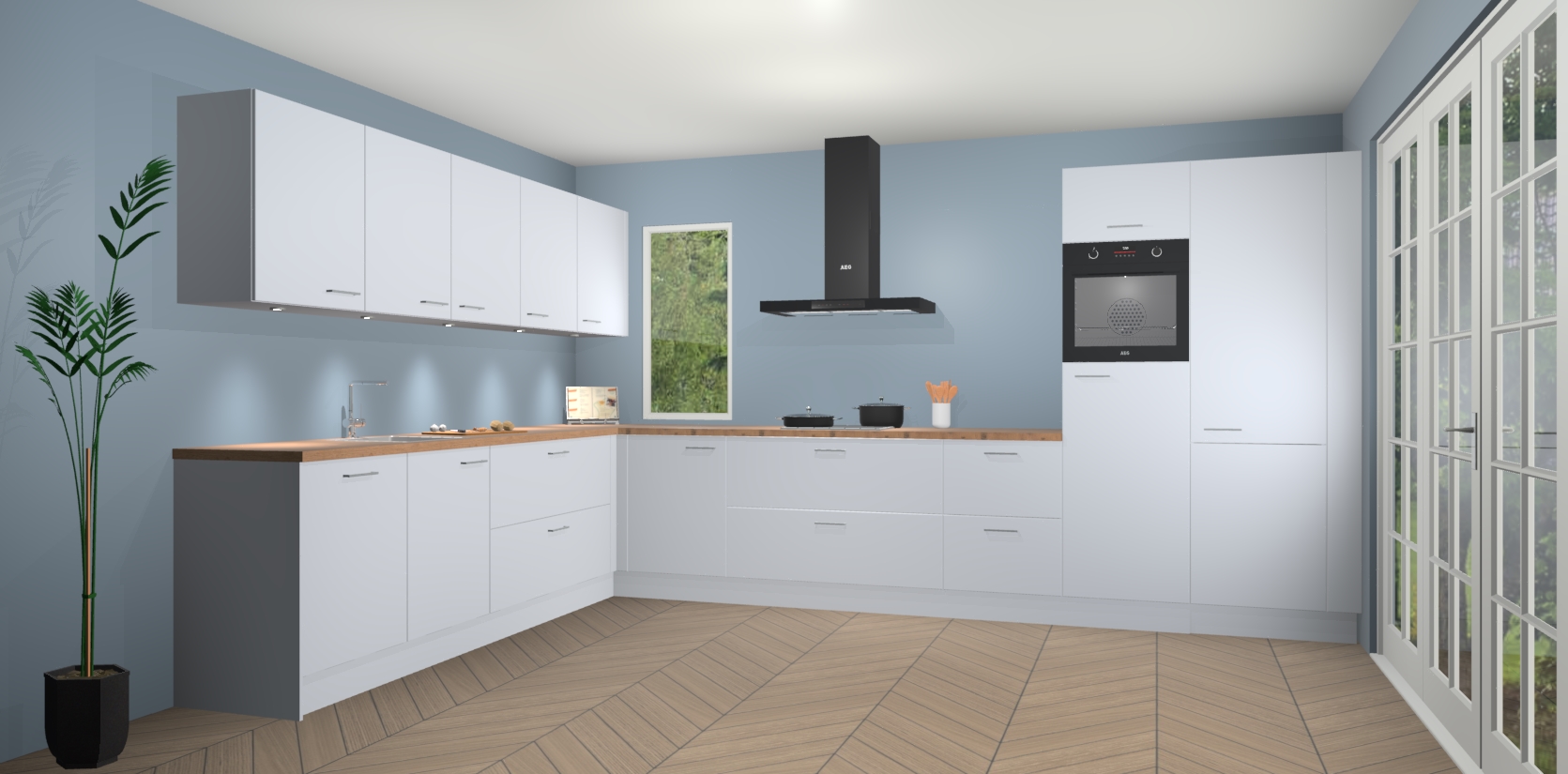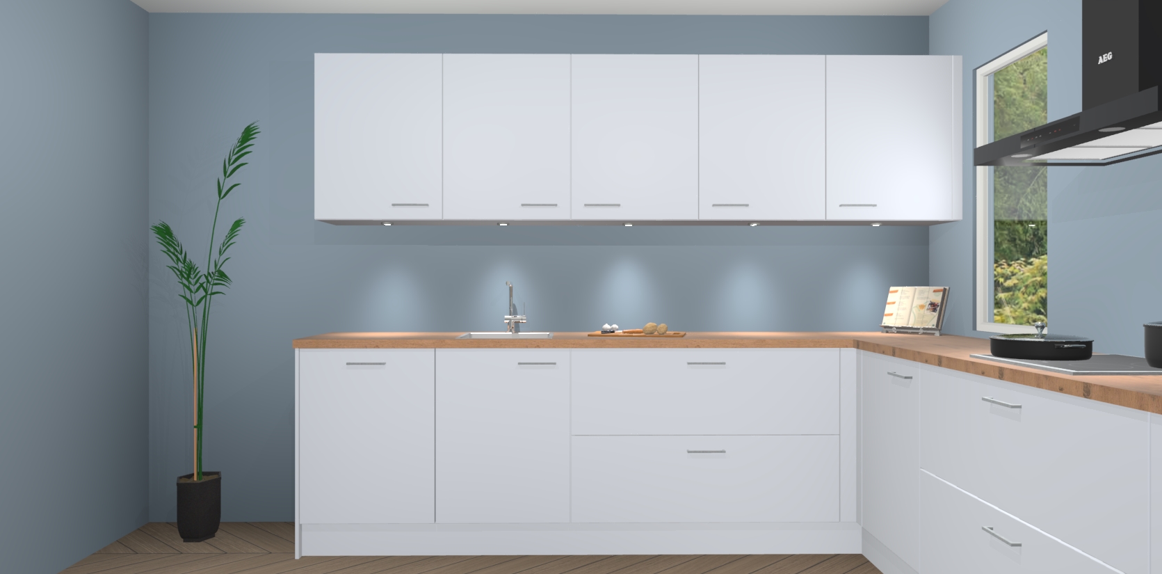 Heeft u nog apparatuur nodig? Geen probleem: de sneeuwwitte keuken Harare bevat vijf ingebouwde apparaten - een oven, inductiekookplaat, afzuigkap, vaatwasser en koelkast - die gemakkelijk kunnen worden bijgewerkt naar AEG na bestelling. En als dat nog niet genoeg is; onze kasten worden pre-geassembleerd geleverd en zijn verkrijgbaar tegen een vastgeroeste lage prijs! U hoeft nooit meer te zoeken naar goede kwaliteit en service want onze producten hebben echt Duitse kwaliteit.
