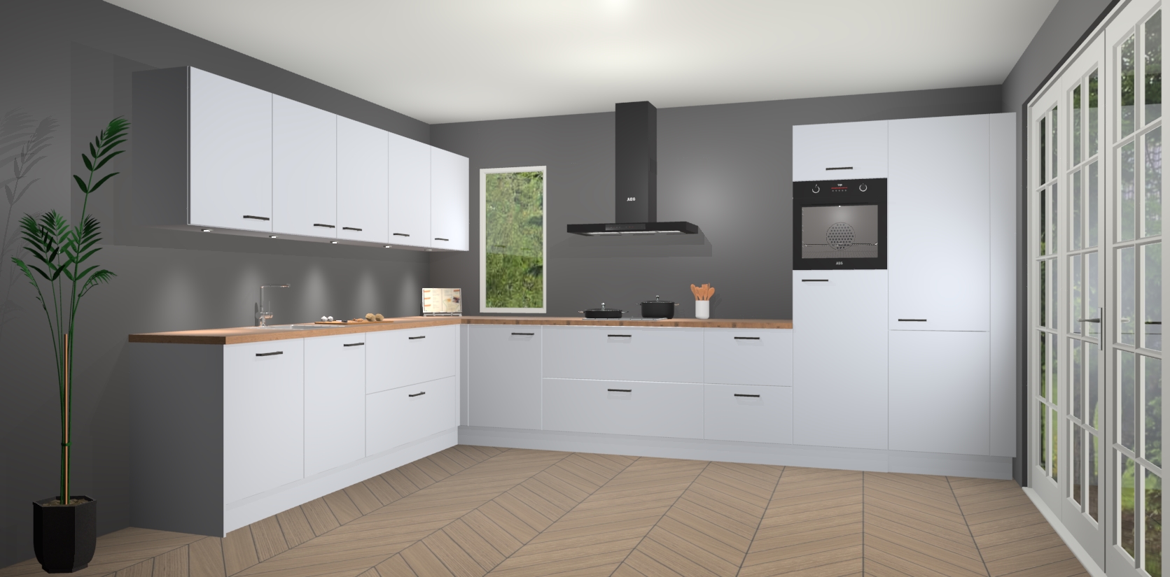 Kom dichtbij de perfecte keuken van uw dromen met de sneeuwwitte keuken Harare. Met een prachtige houtlook en eigentijds ontwerp, straalt deze keuken warmte en sfeer uit. Of u nu liefhebber bent van traditionele of moderne stijlen, er is genoeg ruimte om aan al uw behoeften te voldoen.