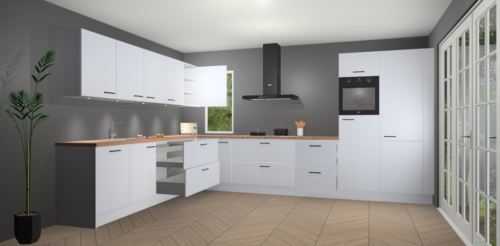 Heeft u nog apparatuur nodig? Geen probleem: de sneeuwwitte keuken Harare bevat vijf ingebouwde apparaten - een oven, inductiekookplaat, afzuigkap, vaatwasser en koelkast - die gemakkelijk kunnen worden bijgewerkt naar AEG na bestelling. En als dat nog niet genoeg is; onze kasten worden pre-geassembleerd geleverd en zijn verkrijgbaar tegen een vastgeroeste lage prijs! U hoeft nooit meer te zoeken naar goede kwaliteit en service want onze producten hebben echt Duitse kwaliteit.