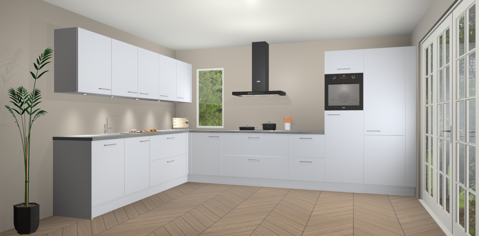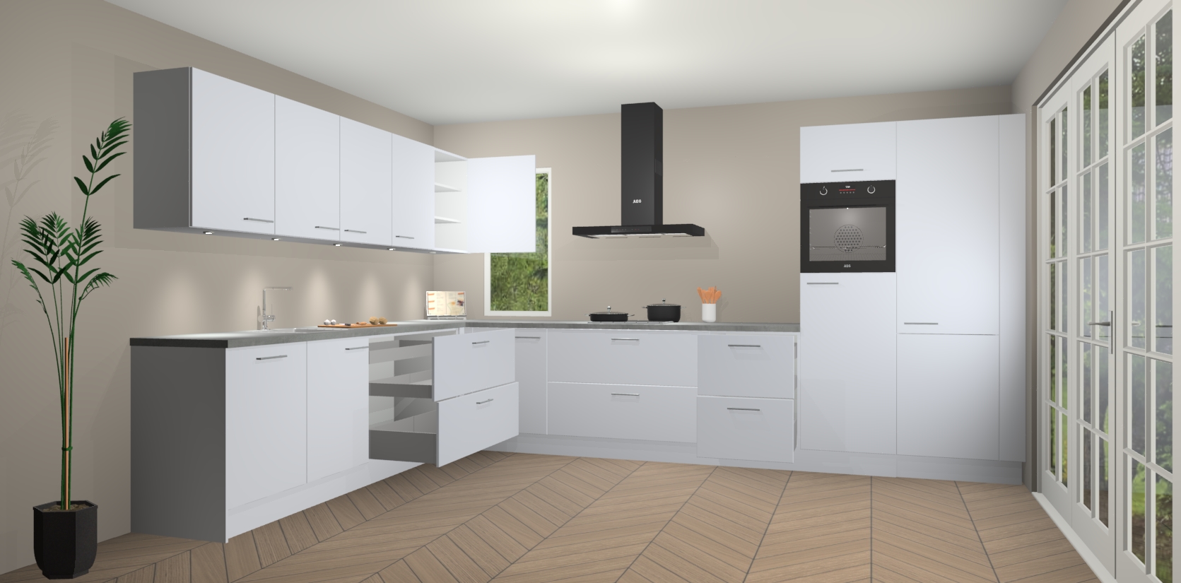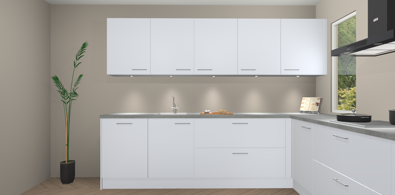 Heeft u nog apparatuur nodig? Geen probleem: de sneeuwwitte keuken Harare bevat vijf ingebouwde apparaten - een oven, inductiekookplaat, afzuigkap, vaatwasser en koelkast - die gemakkelijk kunnen worden bijgewerkt naar AEG na bestelling. En als dat nog niet genoeg is; onze kasten worden pre-geassembleerd geleverd en zijn verkrijgbaar tegen een vastgeroeste lage prijs! U hoeft nooit meer te zoeken naar goede kwaliteit en service want onze producten hebben echt Duitse kwaliteit.