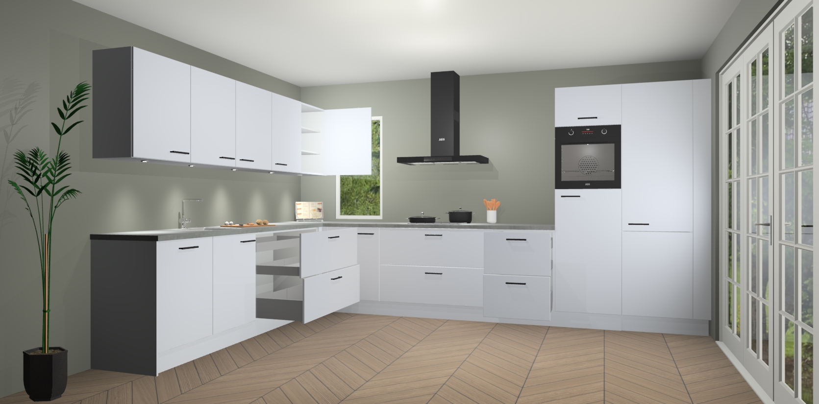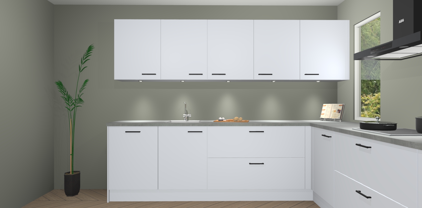 Heeft u nog apparatuur nodig? Geen probleem: de sneeuwwitte keuken Harare bevat vijf ingebouwde apparaten - een oven, inductiekookplaat, afzuigkap, vaatwasser en koelkast - die gemakkelijk kunnen worden bijgewerkt naar AEG na bestelling. En als dat nog niet genoeg is; onze kasten worden pre-geassembleerd geleverd en zijn verkrijgbaar tegen een vastgeroeste lage prijs! U hoeft nooit meer te zoeken naar goede kwaliteit en service want onze producten hebben echt Duitse kwaliteit.
