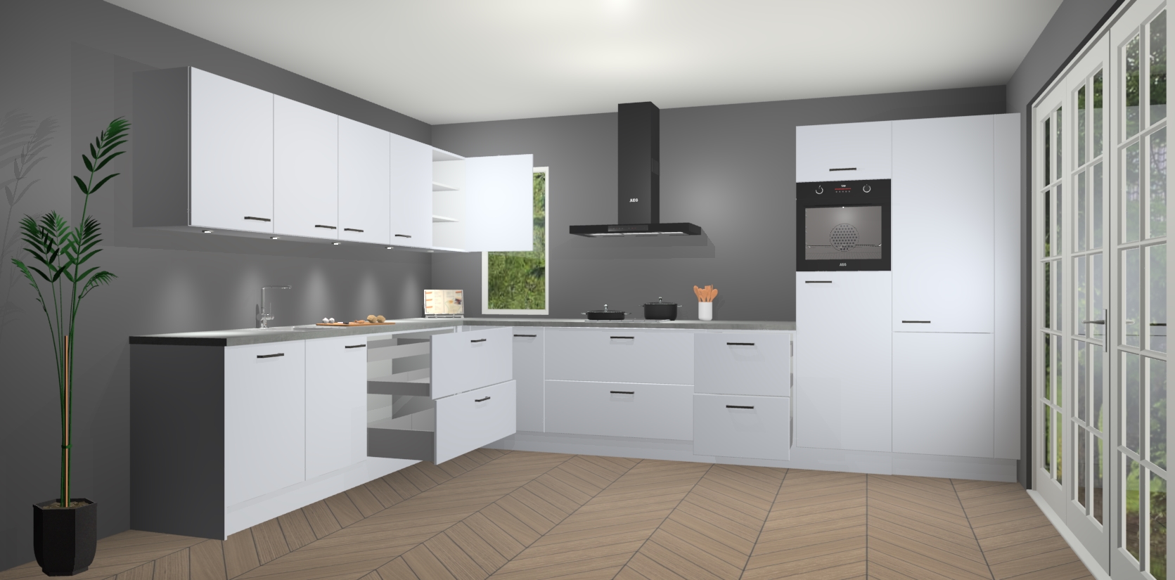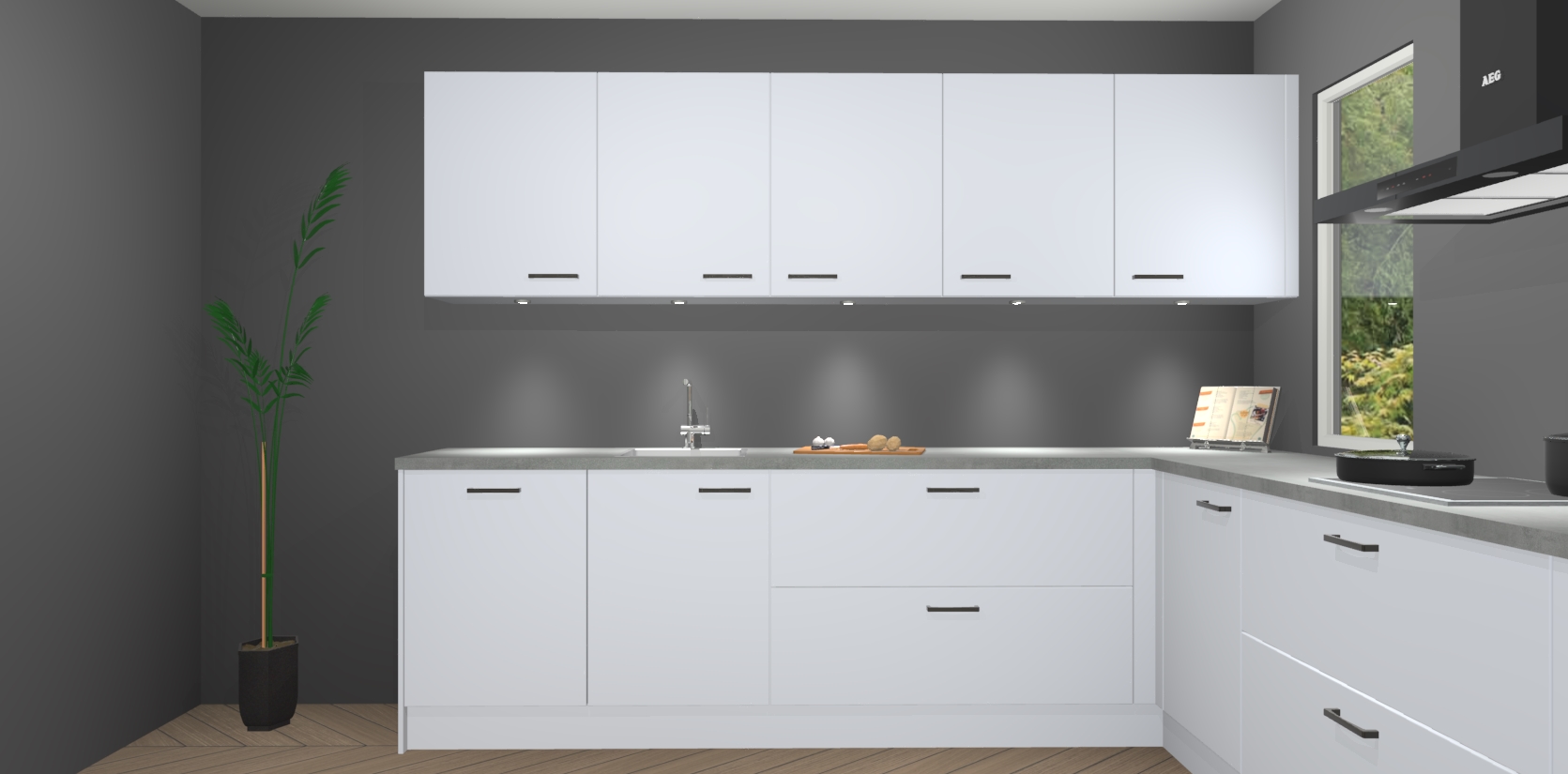Heeft u nog apparatuur nodig? Geen probleem: de sneeuwwitte keuken Harare bevat vijf ingebouwde apparaten - een oven, inductiekookplaat, afzuigkap, vaatwasser en koelkast - die gemakkelijk kunnen worden bijgewerkt naar AEG na bestelling. En als dat nog niet genoeg is; onze kasten worden pre-geassembleerd geleverd en zijn verkrijgbaar tegen een vastgeroeste lage prijs! U hoeft nooit meer te zoeken naar goede kwaliteit en service want onze producten hebben echt Duitse kwaliteit.