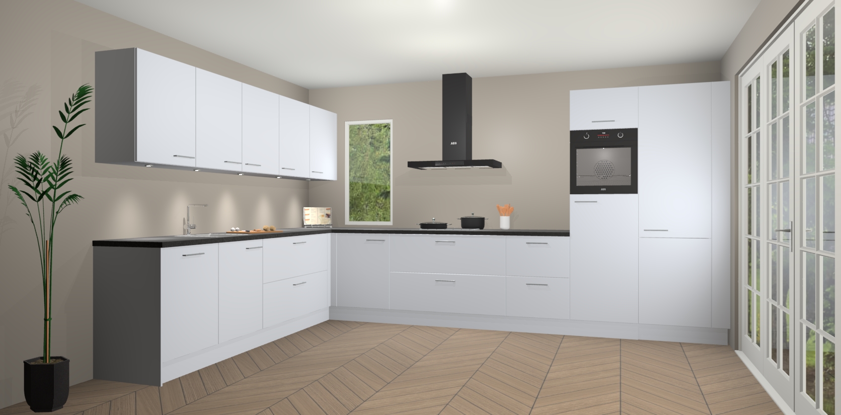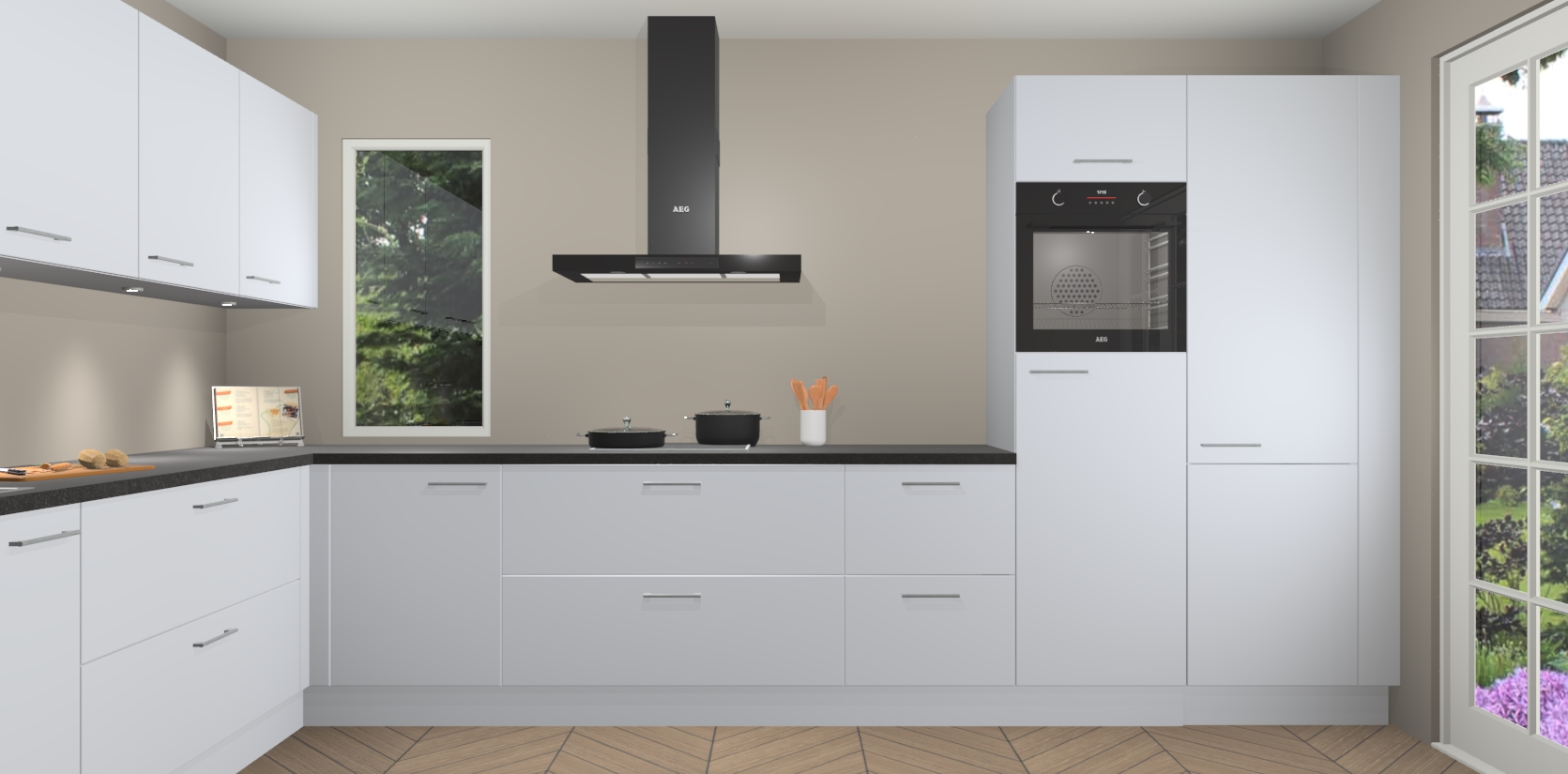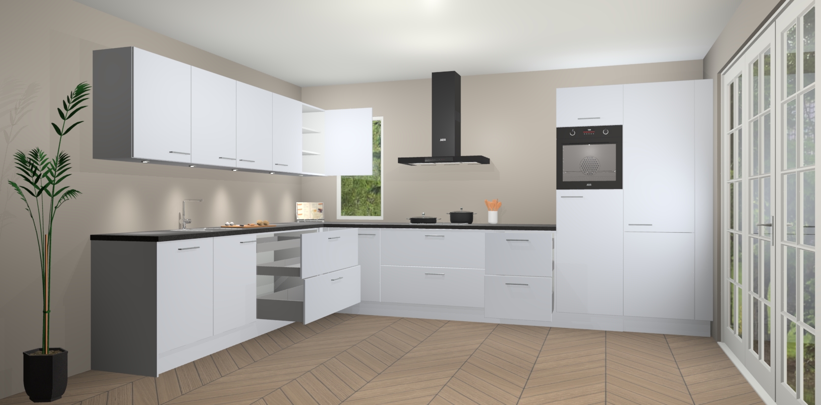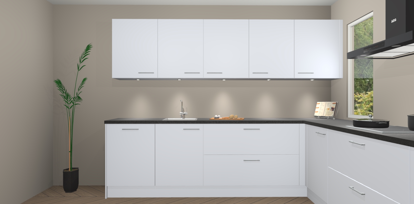 Heeft u nog apparatuur nodig? Geen probleem: de sneeuwwitte keuken Harare bevat vijf ingebouwde apparaten - een oven, inductiekookplaat, afzuigkap, vaatwasser en koelkast - die gemakkelijk kunnen worden bijgewerkt naar AEG na bestelling. En als dat nog niet genoeg is; onze kasten worden pre-geassembleerd geleverd en zijn verkrijgbaar tegen een vastgeroeste lage prijs! U hoeft nooit meer te zoeken naar goede kwaliteit en service want onze producten hebben echt Duitse kwaliteit.