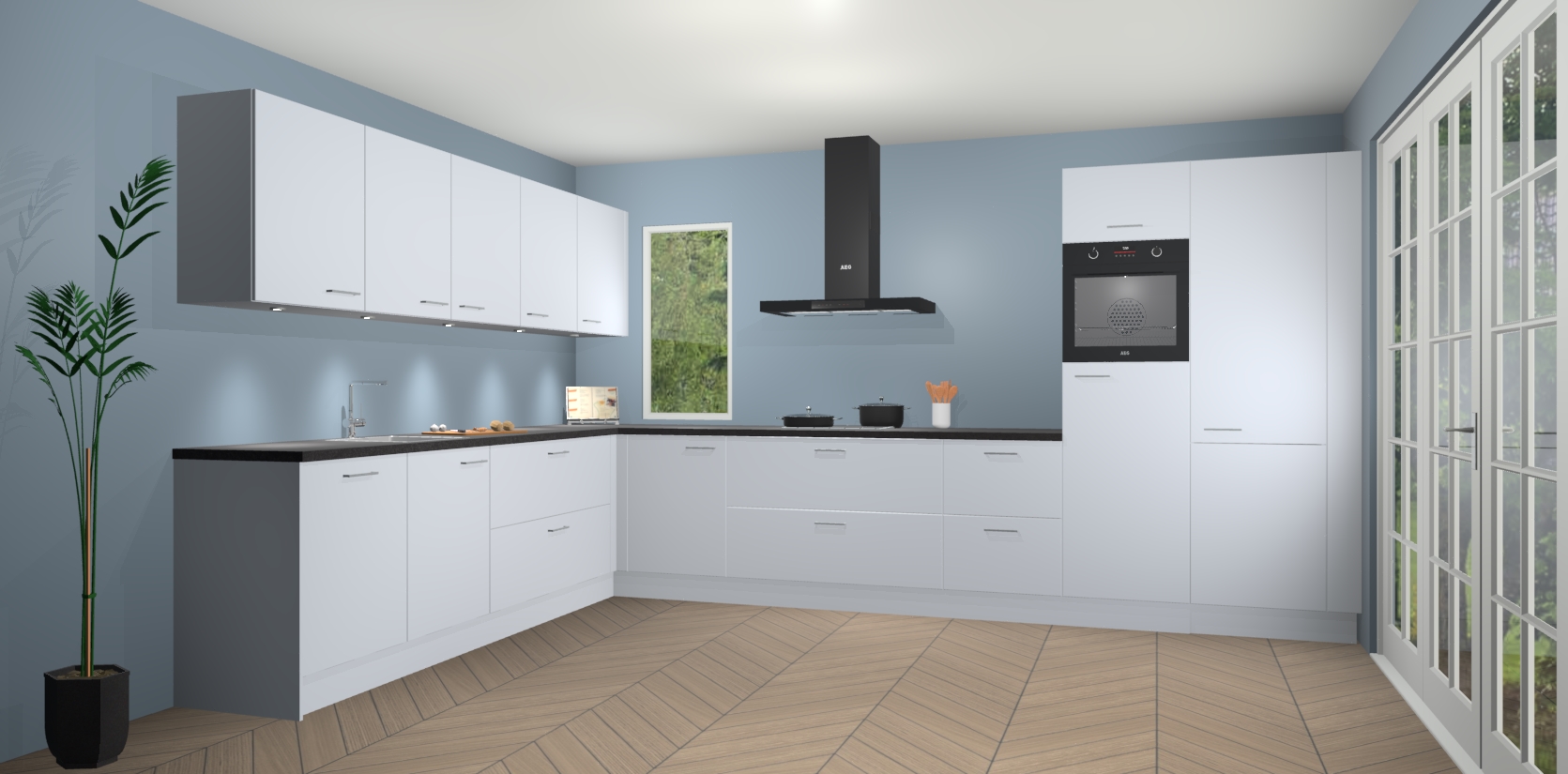 Heeft u nog apparatuur nodig? Geen probleem: de sneeuwwitte keuken Harare bevat vijf ingebouwde apparaten - een oven, inductiekookplaat, afzuigkap, vaatwasser en koelkast - die gemakkelijk kunnen worden bijgewerkt naar AEG na bestelling. En als dat nog niet genoeg is; onze kasten worden pre-geassembleerd geleverd en zijn verkrijgbaar tegen een vastgeroeste lage prijs! U hoeft nooit meer te zoeken naar goede kwaliteit en service want onze producten hebben echt Duitse kwaliteit.