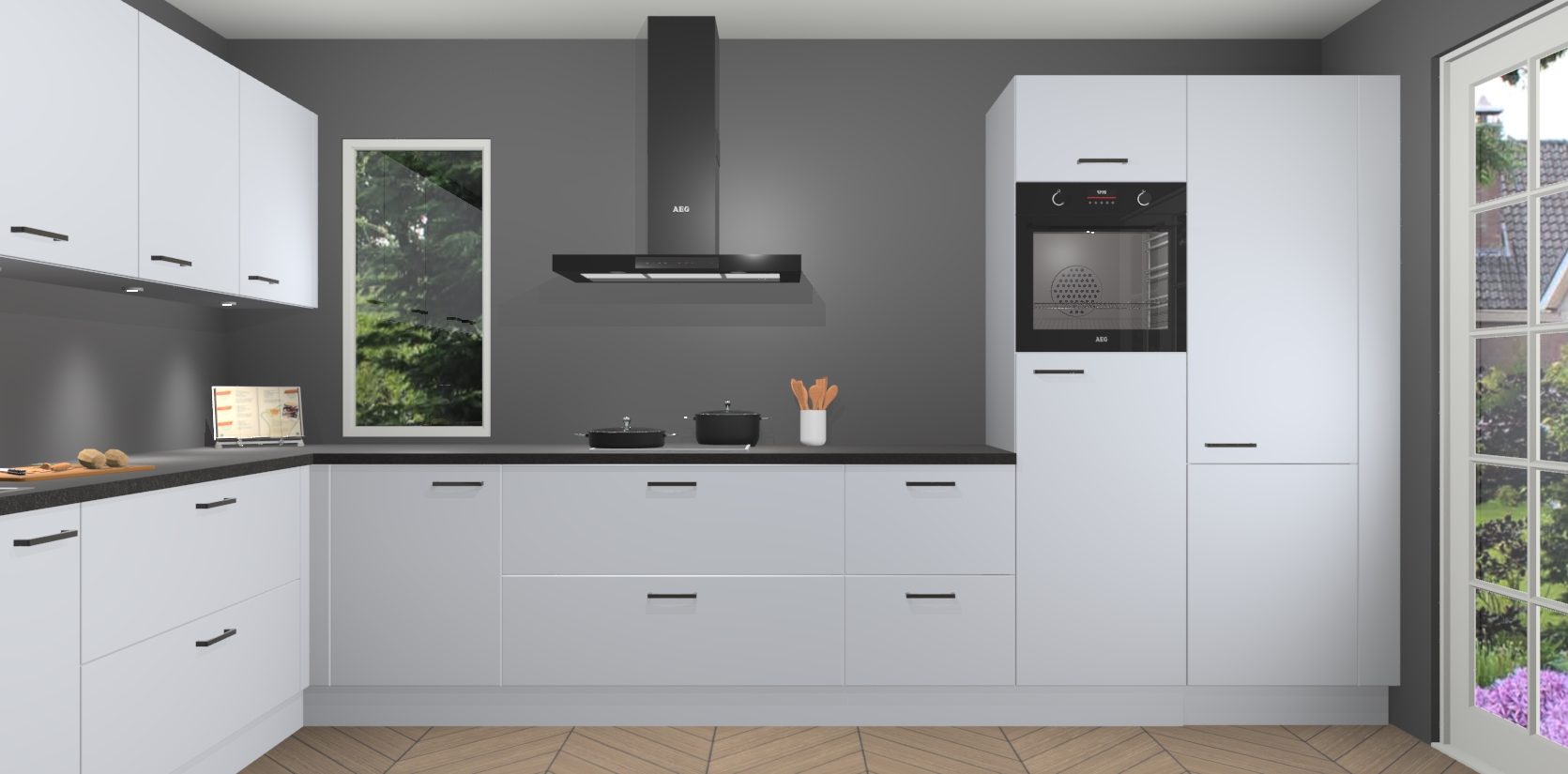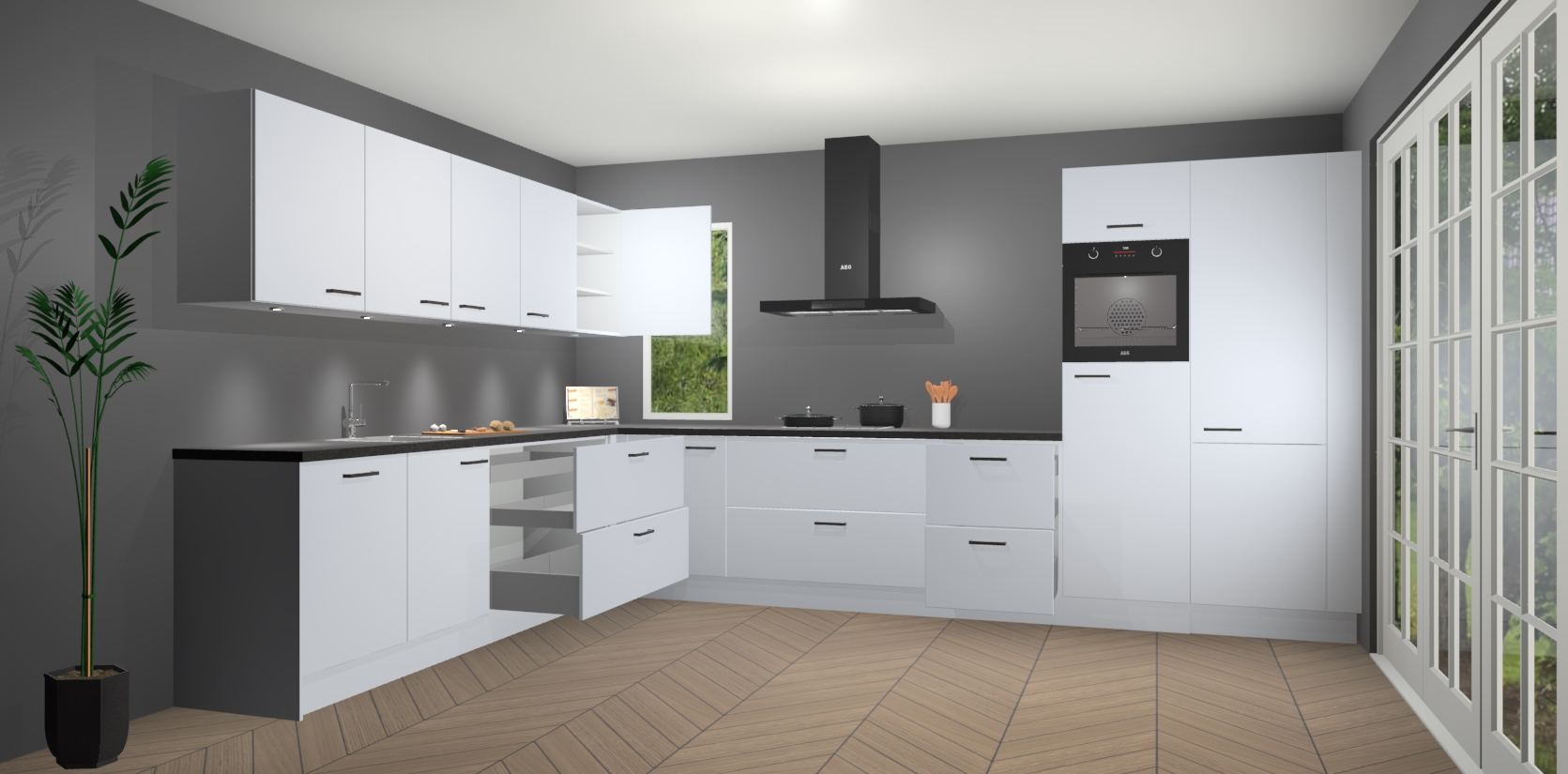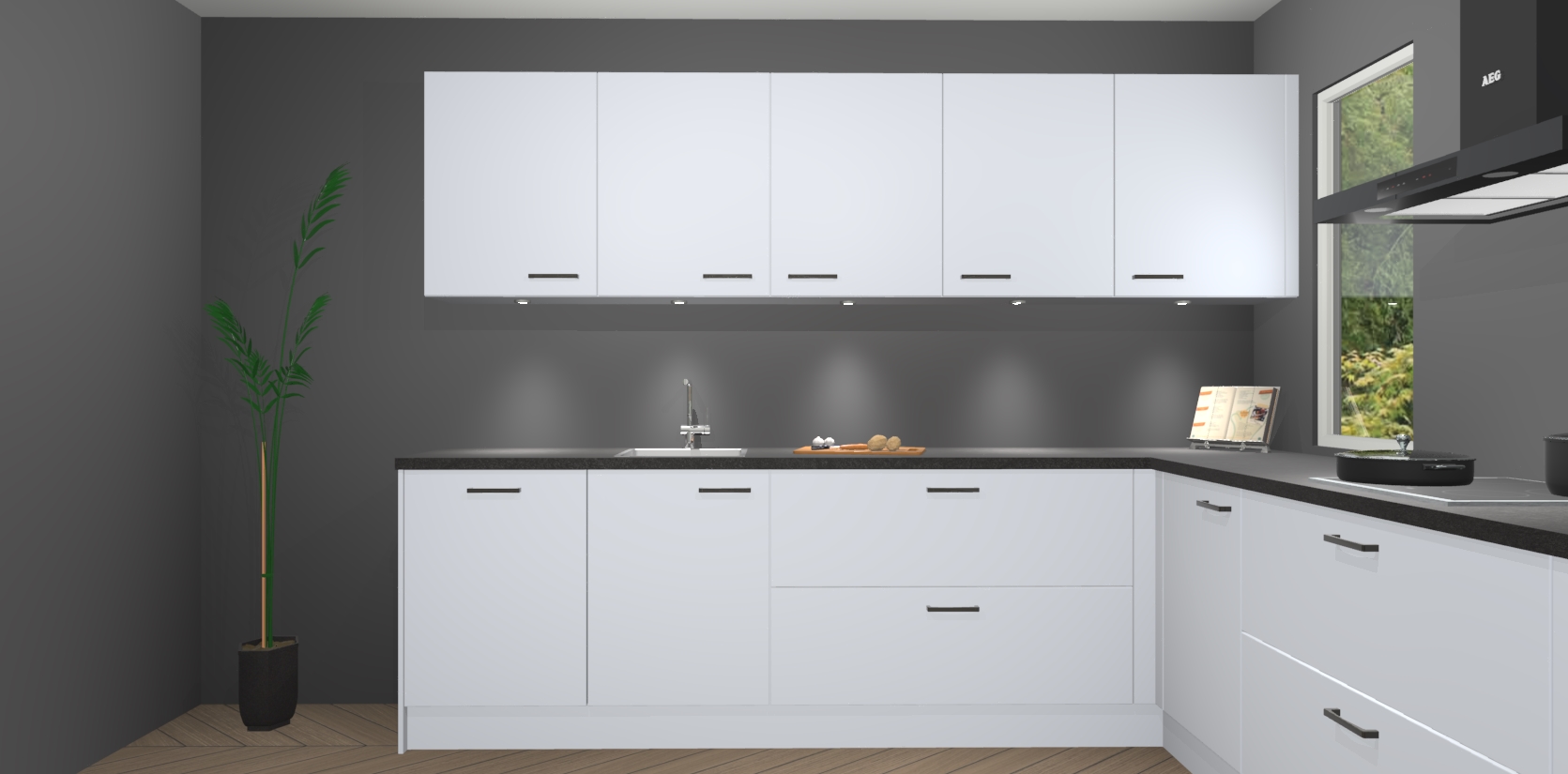 Heeft u nog apparatuur nodig? Geen probleem: de sneeuwwitte keuken Harare bevat vijf ingebouwde apparaten - een oven, inductiekookplaat, afzuigkap, vaatwasser en koelkast - die gemakkelijk kunnen worden bijgewerkt naar AEG na bestelling. En als dat nog niet genoeg is; onze kasten worden pre-geassembleerd geleverd en zijn verkrijgbaar tegen een vastgeroeste lage prijs! U hoeft nooit meer te zoeken naar goede kwaliteit en service want onze producten hebben echt Duitse kwaliteit.