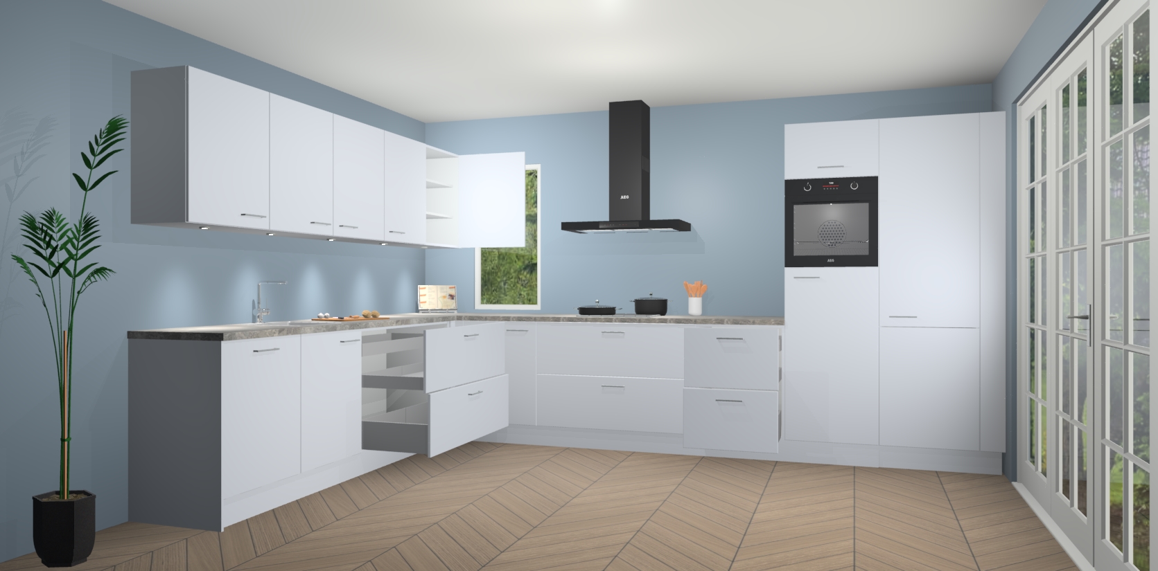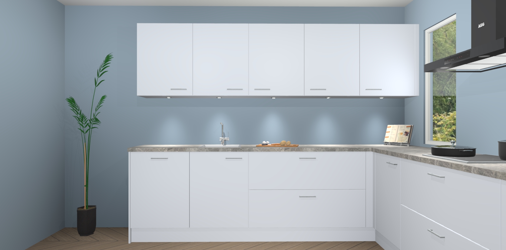 Heeft u nog apparatuur nodig? Geen probleem: de sneeuwwitte keuken Harare bevat vijf ingebouwde apparaten - een oven, inductiekookplaat, afzuigkap, vaatwasser en koelkast - die gemakkelijk kunnen worden bijgewerkt naar AEG na bestelling. En als dat nog niet genoeg is; onze kasten worden pre-geassembleerd geleverd en zijn verkrijgbaar tegen een vastgeroeste lage prijs! U hoeft nooit meer te zoeken naar goede kwaliteit en service want onze producten hebben echt Duitse kwaliteit.
