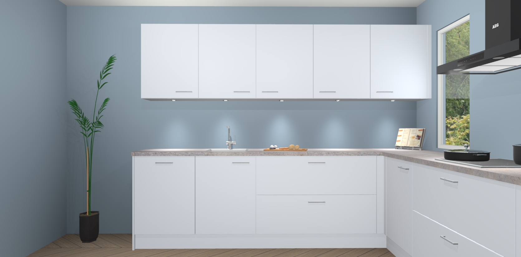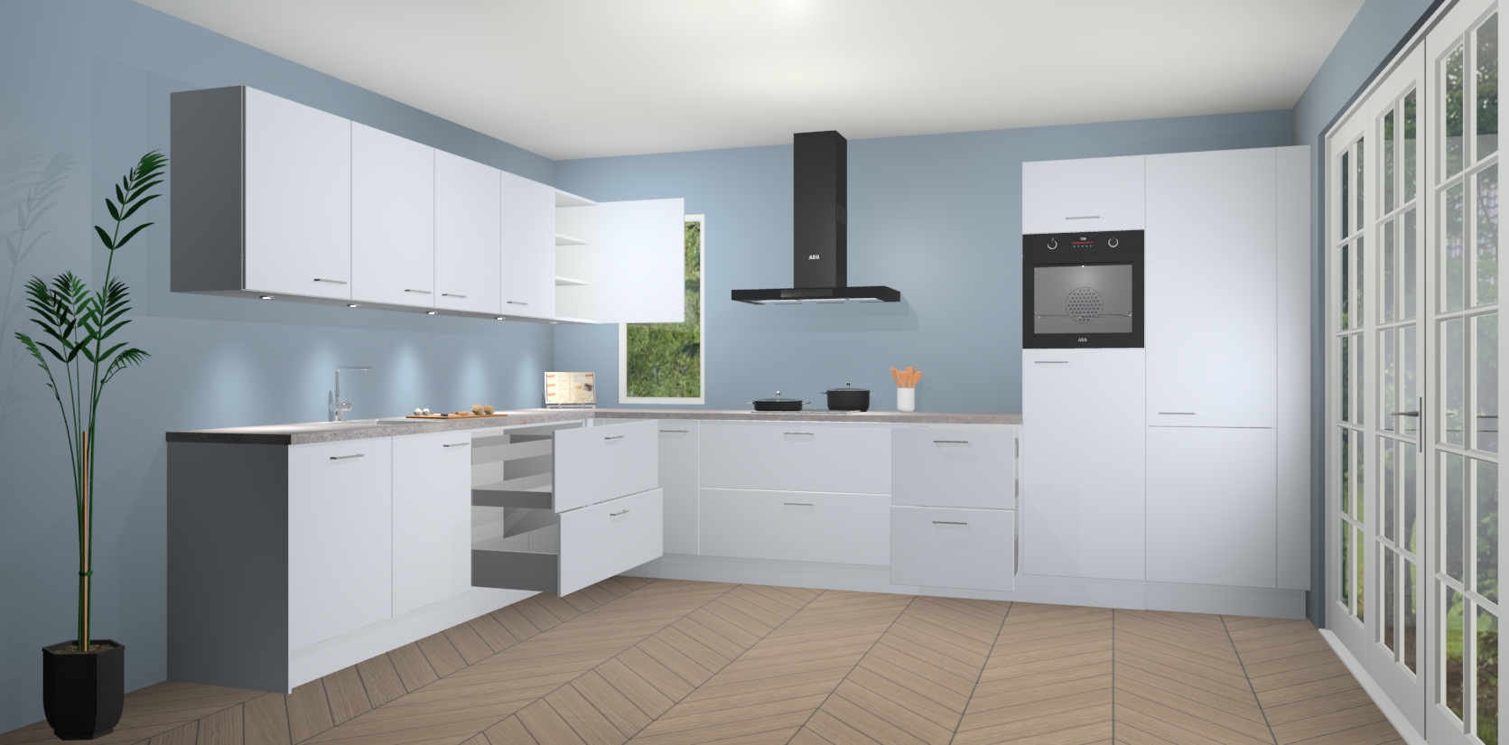 Heeft u nog apparatuur nodig? Geen probleem: de sneeuwwitte keuken Harare bevat vijf ingebouwde apparaten - een oven, inductiekookplaat, afzuigkap, vaatwasser en koelkast - die gemakkelijk kunnen worden bijgewerkt naar AEG na bestelling. En als dat nog niet genoeg is; onze kasten worden pre-geassembleerd geleverd en zijn verkrijgbaar tegen een vastgeroeste lage prijs! U hoeft nooit meer te zoeken naar goede kwaliteit en service want onze producten hebben echt Duitse kwaliteit.