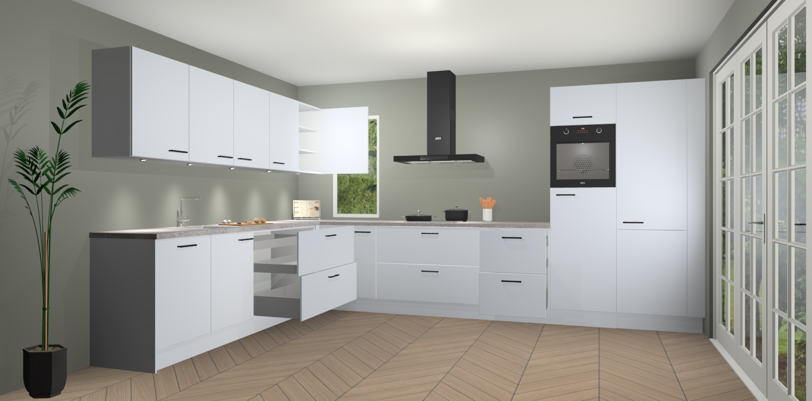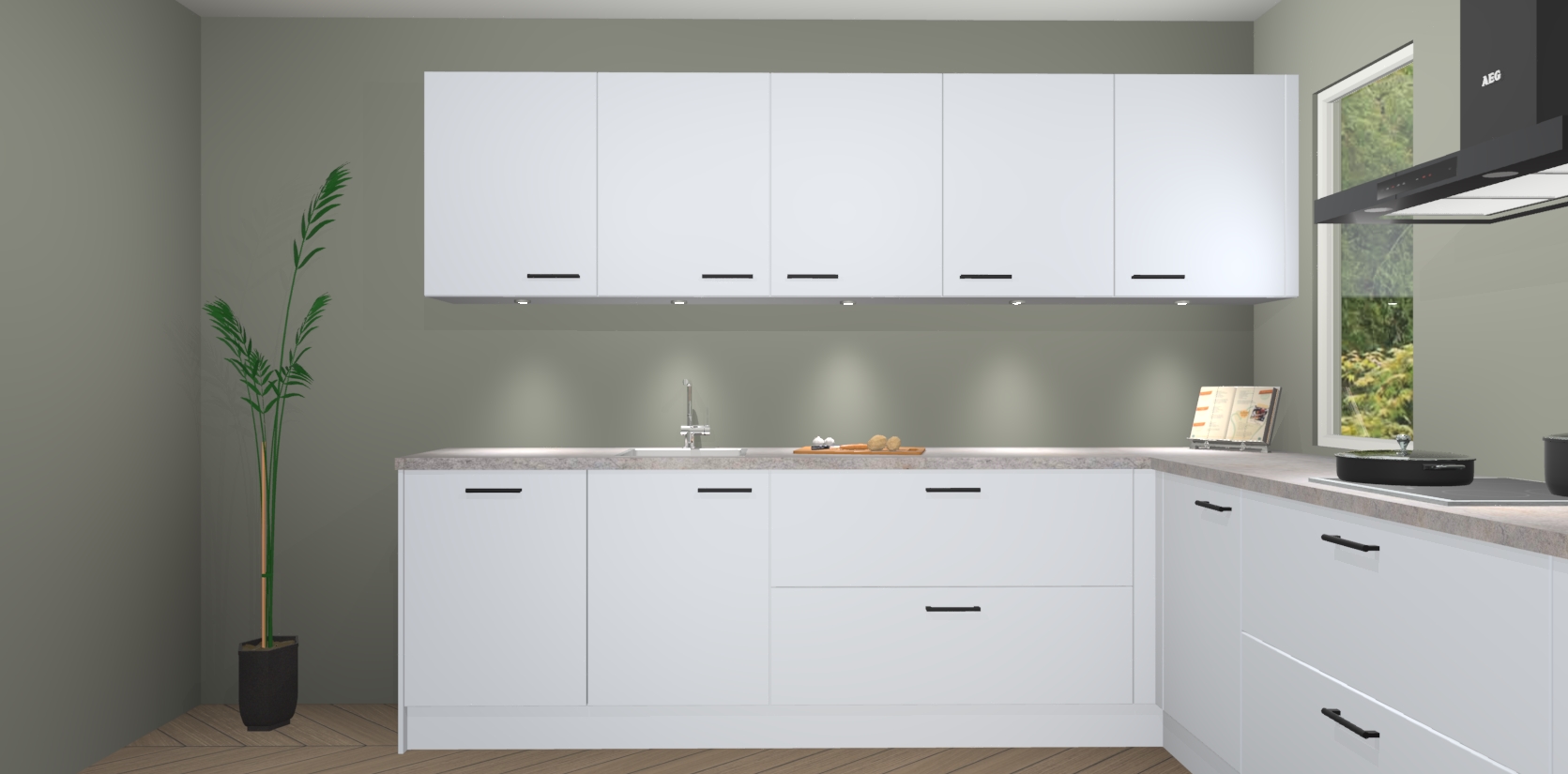 Heeft u nog apparatuur nodig? Geen probleem: de sneeuwwitte keuken Harare bevat vijf ingebouwde apparaten - een oven, inductiekookplaat, afzuigkap, vaatwasser en koelkast - die gemakkelijk kunnen worden bijgewerkt naar AEG na bestelling. En als dat nog niet genoeg is; onze kasten worden pre-geassembleerd geleverd en zijn verkrijgbaar tegen een vastgeroeste lage prijs! U hoeft nooit meer te zoeken naar goede kwaliteit en service want onze producten hebben echt Duitse kwaliteit.
