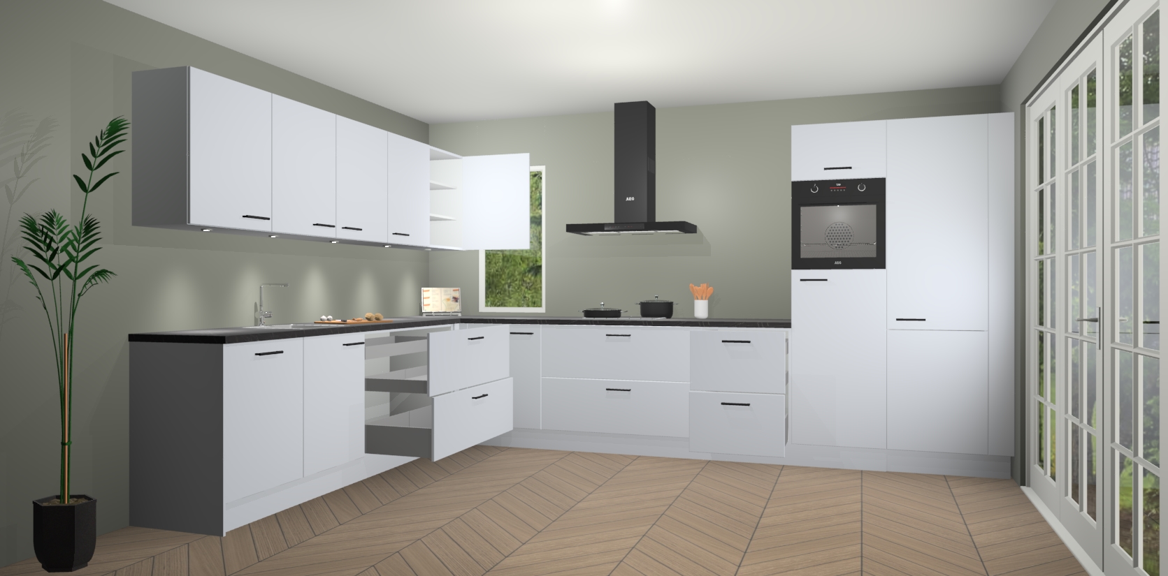 Heeft u nog apparatuur nodig? Geen probleem: de sneeuwwitte keuken Harare bevat vijf ingebouwde apparaten - een oven, inductiekookplaat, afzuigkap, vaatwasser en koelkast - die gemakkelijk kunnen worden bijgewerkt naar AEG na bestelling. En als dat nog niet genoeg is; onze kasten worden pre-geassembleerd geleverd en zijn verkrijgbaar tegen een vastgeroeste lage prijs! U hoeft nooit meer te zoeken naar goede kwaliteit en service want onze producten hebben echt Duitse kwaliteit.