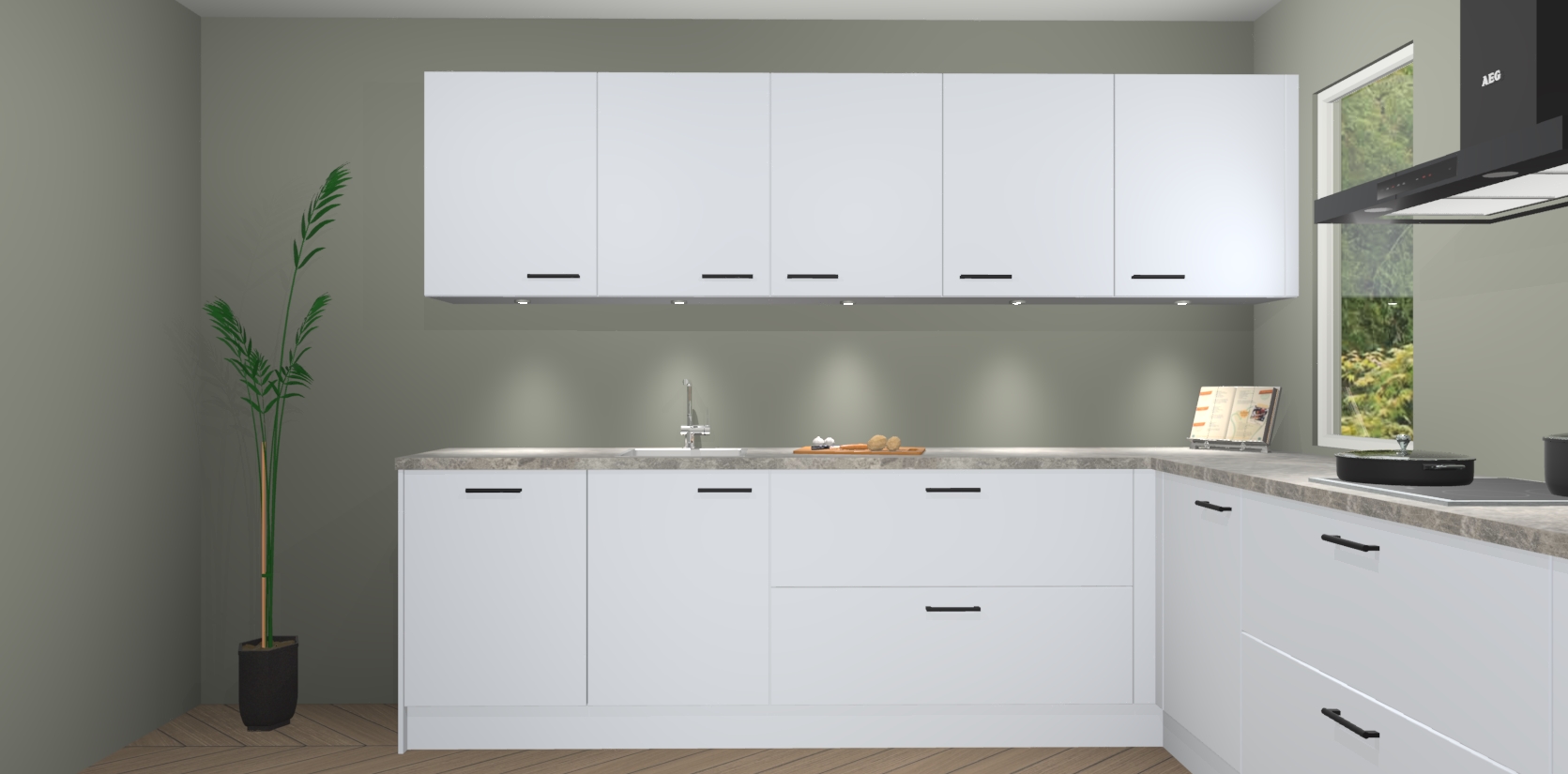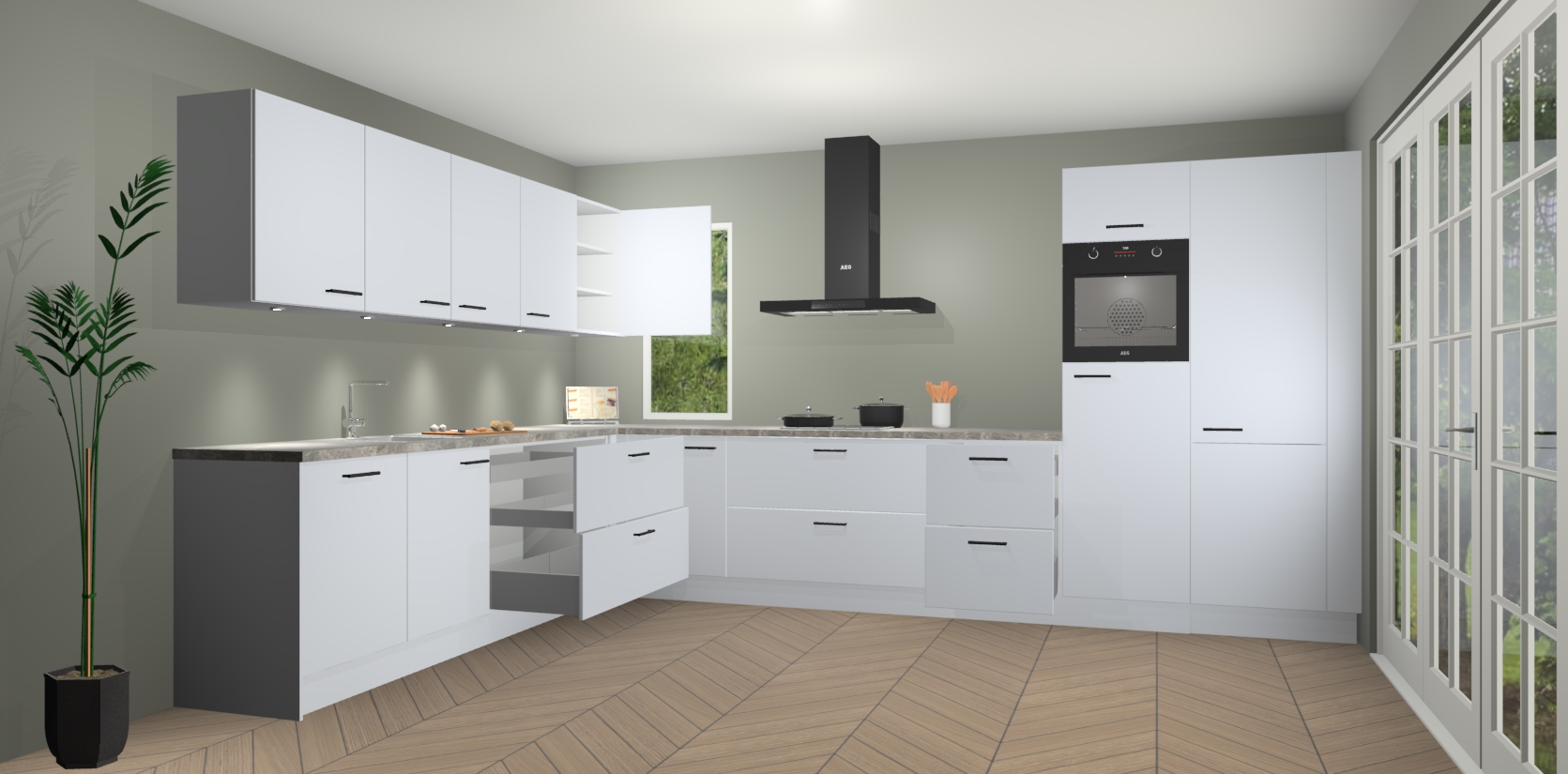 Heeft u nog apparatuur nodig? Geen probleem: de sneeuwwitte keuken Harare bevat vijf ingebouwde apparaten - een oven, inductiekookplaat, afzuigkap, vaatwasser en koelkast - die gemakkelijk kunnen worden bijgewerkt naar AEG na bestelling. En als dat nog niet genoeg is; onze kasten worden pre-geassembleerd geleverd en zijn verkrijgbaar tegen een vastgeroeste lage prijs! U hoeft nooit meer te zoeken naar goede kwaliteit en service want onze producten hebben echt Duitse kwaliteit.