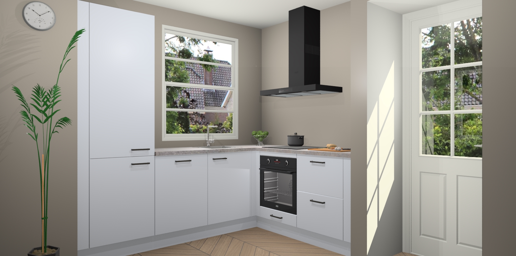 Wilt u een echte aanwinst voor uw keuken, maar bent u op zoek naar iets specialers dan de standaardkeukens? Kies dan voor de Sneeuwwitte keuken Harbin! Dit prachtige hoekkeukenontwerp geeft u alle ruimte om optimaal te genieten van heerlijk koken. Het uitmuntende afwerkingsniveau, de fraaie houtstructuur en de sfeervolle zwarte grepen maken van de Sneeuwwitte keuken Harbin de perfecte keuze voor zowel enthousiaste thuiskoks als design-minded interieurliefhebbers.