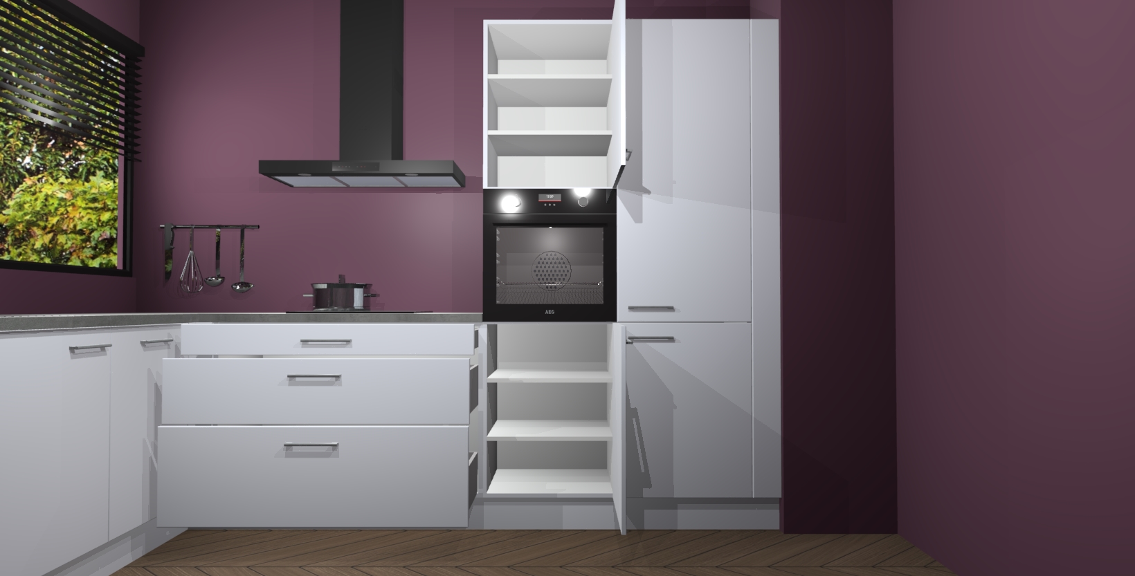 Met een modern, tijdloos design en ruime opslagruimte, zult u zich in no-time thuis voelen in uw nieuwe keuken. Uw leven wordt eenvoudiger met de soft-close deuren die voor het ultieme stille comfort zorgen - geen geluid dat u stoort terwijl u kookt. Ook is de keuken voorzien van 5 ingebouwde apparaten: een oven, inductie kookplaat, afzuigkap, vaatwasser en koelkast. Deze kunnen gemakkelijk na bestelling worden bijgewerkt naar AEG - waardoor uw luxe ervaring compleet is.