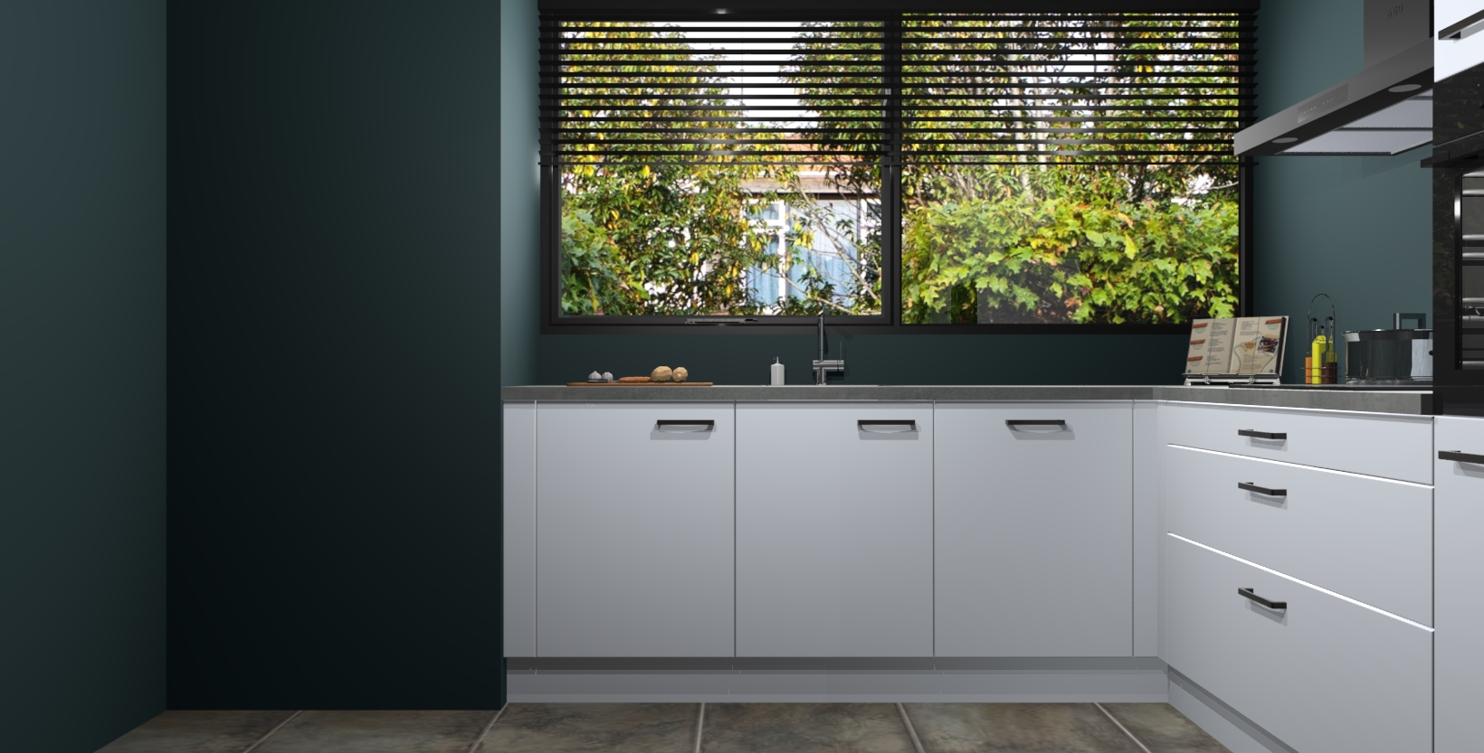 Met een modern, tijdloos design en ruime opslagruimte, zult u zich in no-time thuis voelen in uw nieuwe keuken. Uw leven wordt eenvoudiger met de soft-close deuren die voor het ultieme stille comfort zorgen - geen geluid dat u stoort terwijl u kookt. Ook is de keuken voorzien van 5 ingebouwde apparaten: een oven, inductie kookplaat, afzuigkap, vaatwasser en koelkast. Deze kunnen gemakkelijk na bestelling worden bijgewerkt naar AEG - waardoor uw luxe ervaring compleet is.