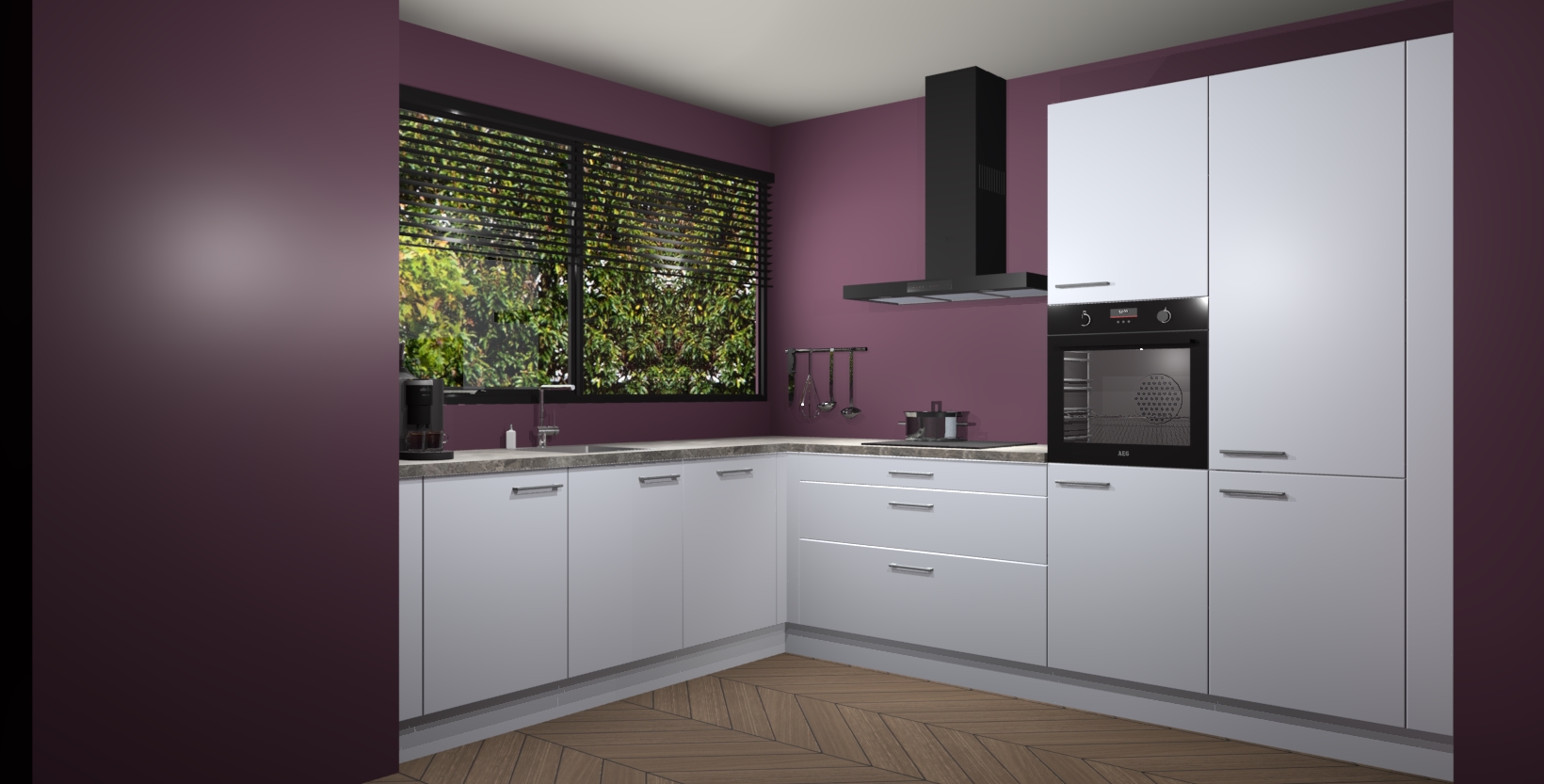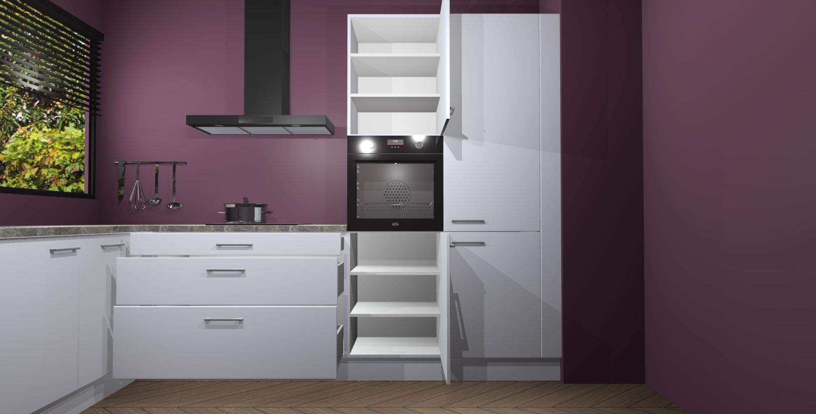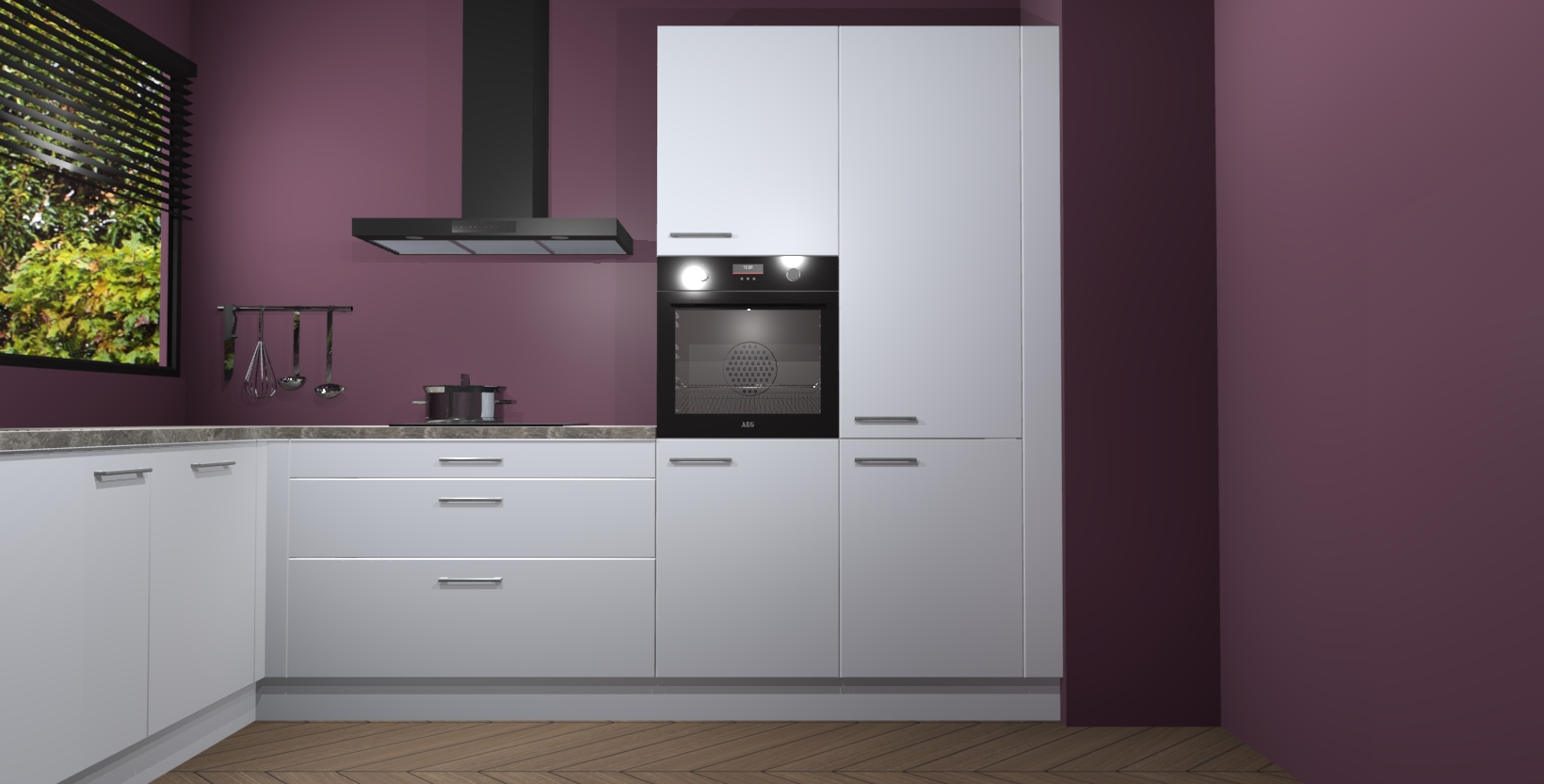 Met een modern, tijdloos design en ruime opslagruimte, zult u zich in no-time thuis voelen in uw nieuwe keuken. Uw leven wordt eenvoudiger met de soft-close deuren die voor het ultieme stille comfort zorgen - geen geluid dat u stoort terwijl u kookt. Ook is de keuken voorzien van 5 ingebouwde apparaten: een oven, inductie kookplaat, afzuigkap, vaatwasser en koelkast. Deze kunnen gemakkelijk na bestelling worden bijgewerkt naar AEG - waardoor uw luxe ervaring compleet is.