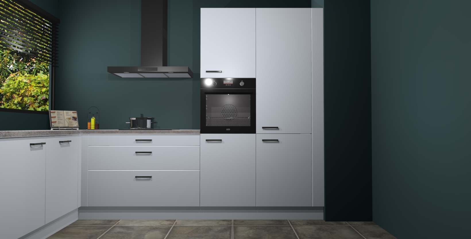 Met een modern, tijdloos design en ruime opslagruimte, zult u zich in no-time thuis voelen in uw nieuwe keuken. Uw leven wordt eenvoudiger met de soft-close deuren die voor het ultieme stille comfort zorgen - geen geluid dat u stoort terwijl u kookt. Ook is de keuken voorzien van 5 ingebouwde apparaten: een oven, inductie kookplaat, afzuigkap, vaatwasser en koelkast. Deze kunnen gemakkelijk na bestelling worden bijgewerkt naar AEG - waardoor uw luxe ervaring compleet is.