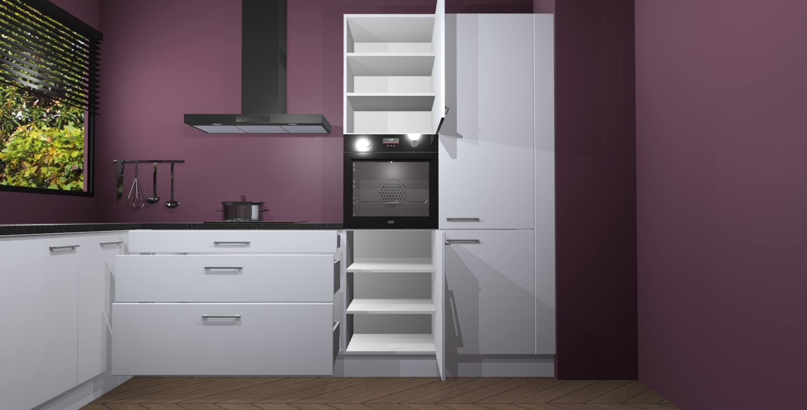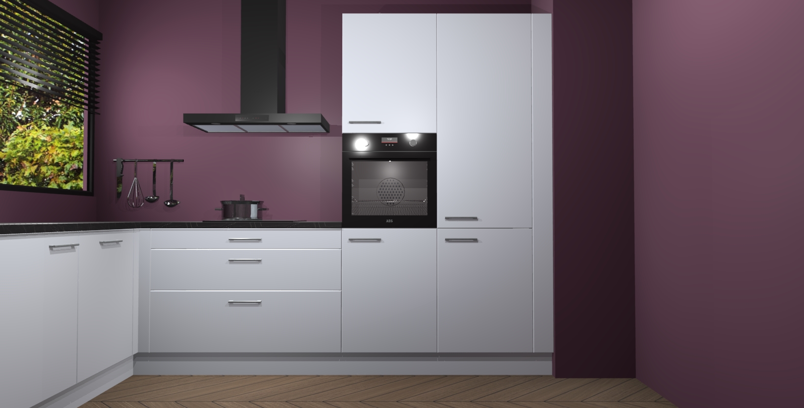 Met een modern, tijdloos design en ruime opslagruimte, zult u zich in no-time thuis voelen in uw nieuwe keuken. Uw leven wordt eenvoudiger met de soft-close deuren die voor het ultieme stille comfort zorgen - geen geluid dat u stoort terwijl u kookt. Ook is de keuken voorzien van 5 ingebouwde apparaten: een oven, inductie kookplaat, afzuigkap, vaatwasser en koelkast. Deze kunnen gemakkelijk na bestelling worden bijgewerkt naar AEG - waardoor uw luxe ervaring compleet is.