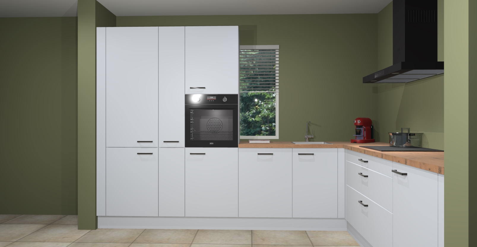 Met een modern, tijdloos design en ruime opslagruimte, zult u zich in no-time thuis voelen in uw nieuwe keuken. Uw leven wordt eenvoudiger met de soft-close deuren die voor het ultieme stille comfort zorgen - geen geluid dat u stoort terwijl u kookt. Ook is de keuken voorzien van 5 ingebouwde apparaten: een oven, inductie kookplaat, afzuigkap, vaatwasser en koelkast. Deze kunnen gemakkelijk na bestelling worden bijgewerkt naar AEG - waardoor uw luxe ervaring compleet is.
