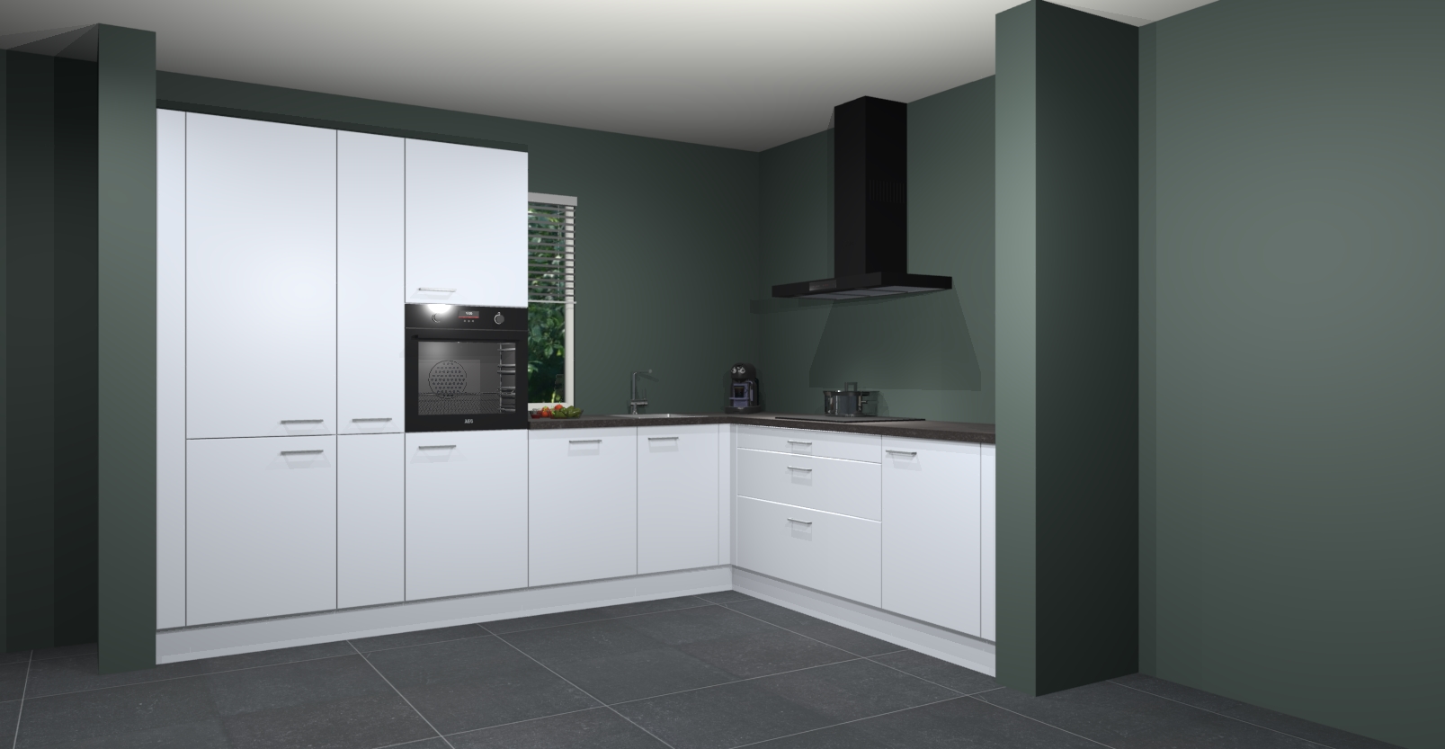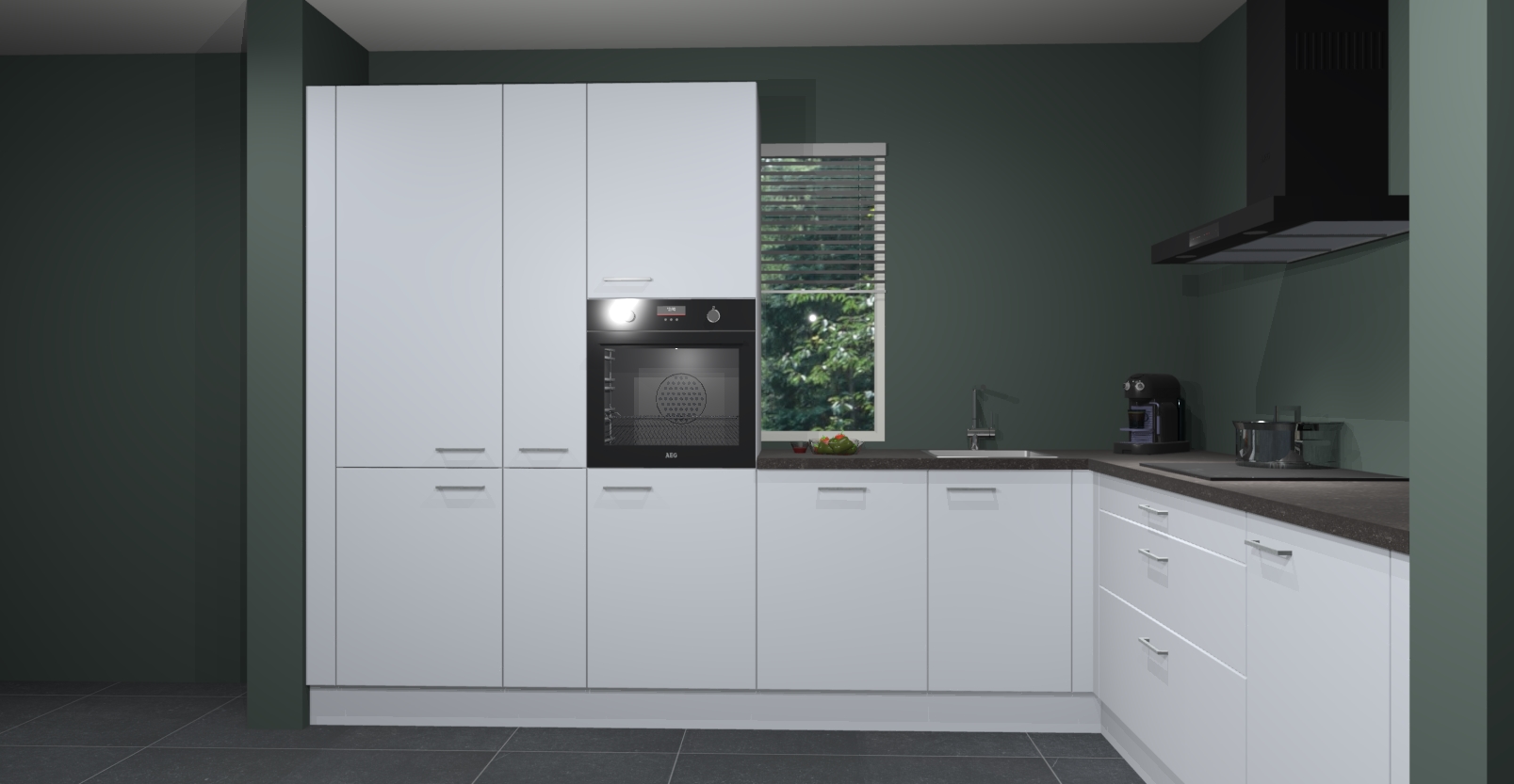 Met een modern, tijdloos design en ruime opslagruimte, zult u zich in no-time thuis voelen in uw nieuwe keuken. Uw leven wordt eenvoudiger met de soft-close deuren die voor het ultieme stille comfort zorgen - geen geluid dat u stoort terwijl u kookt. Ook is de keuken voorzien van 5 ingebouwde apparaten: een oven, inductie kookplaat, afzuigkap, vaatwasser en koelkast. Deze kunnen gemakkelijk na bestelling worden bijgewerkt naar AEG - waardoor uw luxe ervaring compleet is.