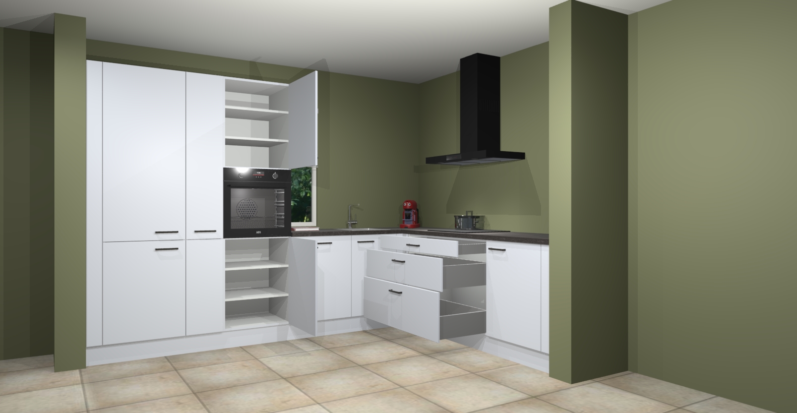 Met een modern, tijdloos design en ruime opslagruimte, zult u zich in no-time thuis voelen in uw nieuwe keuken. Uw leven wordt eenvoudiger met de soft-close deuren die voor het ultieme stille comfort zorgen - geen geluid dat u stoort terwijl u kookt. Ook is de keuken voorzien van 5 ingebouwde apparaten: een oven, inductie kookplaat, afzuigkap, vaatwasser en koelkast. Deze kunnen gemakkelijk na bestelling worden bijgewerkt naar AEG - waardoor uw luxe ervaring compleet is.