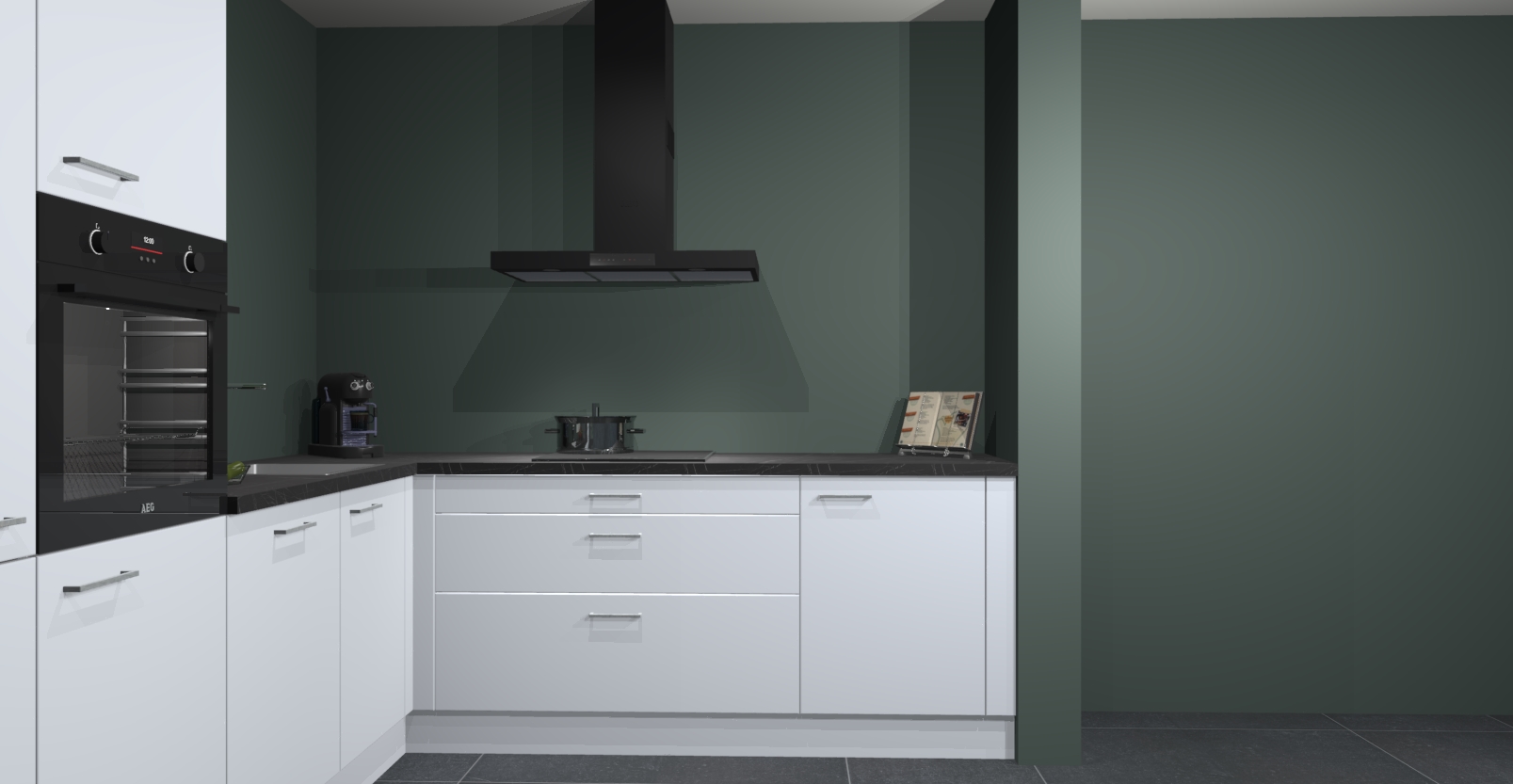Met een modern, tijdloos design en ruime opslagruimte, zult u zich in no-time thuis voelen in uw nieuwe keuken. Uw leven wordt eenvoudiger met de soft-close deuren die voor het ultieme stille comfort zorgen - geen geluid dat u stoort terwijl u kookt. Ook is de keuken voorzien van 5 ingebouwde apparaten: een oven, inductie kookplaat, afzuigkap, vaatwasser en koelkast. Deze kunnen gemakkelijk na bestelling worden bijgewerkt naar AEG - waardoor uw luxe ervaring compleet is.