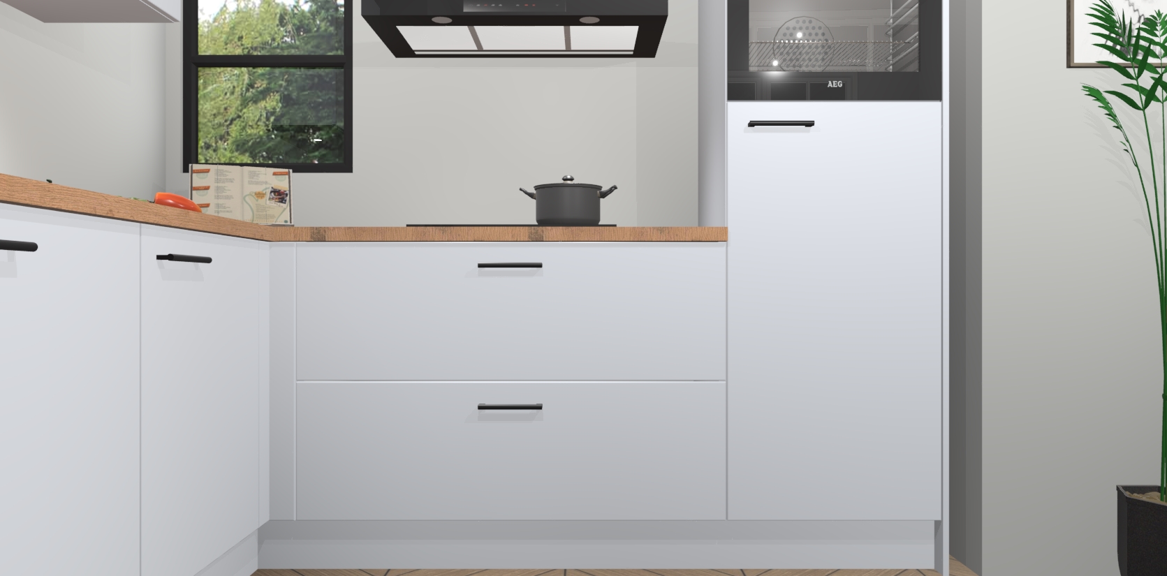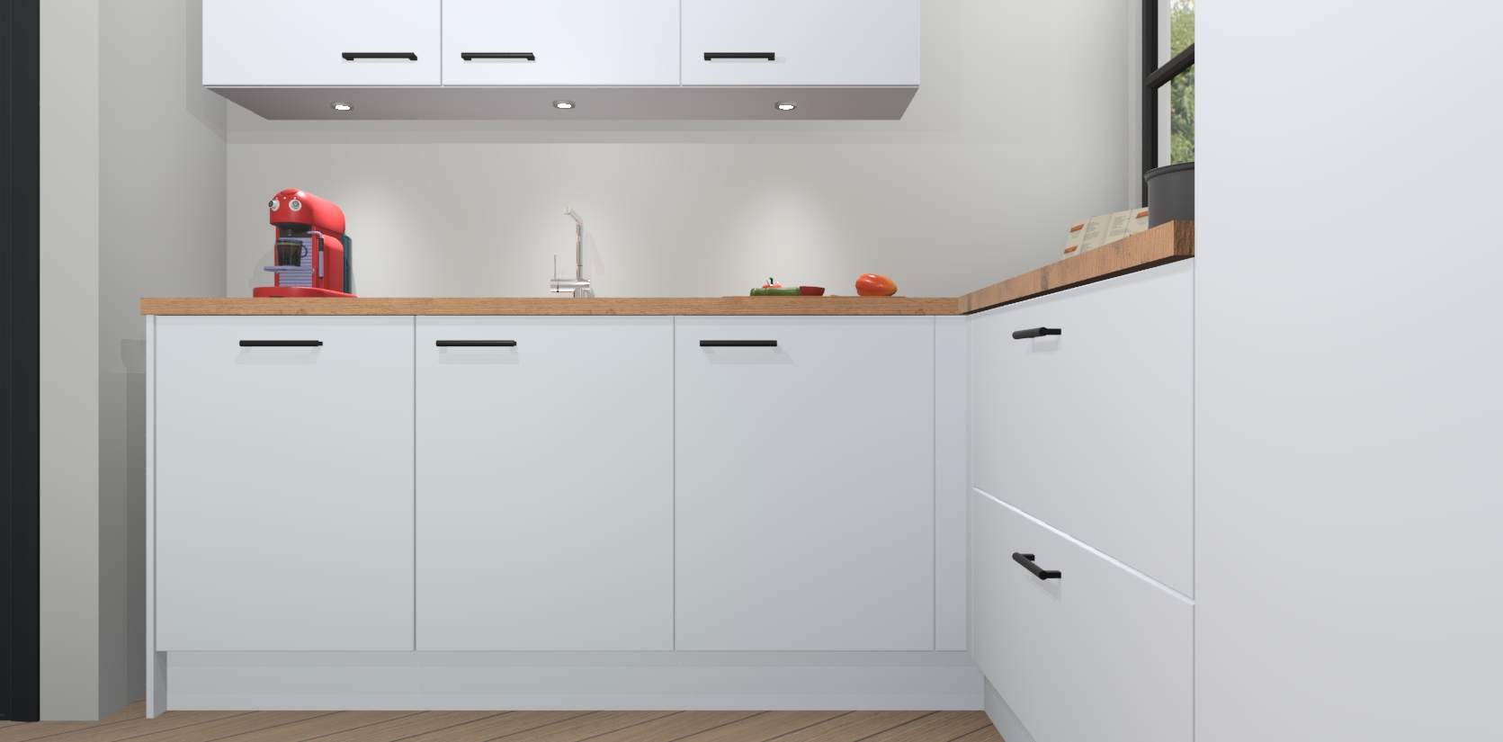 Inclusief plinten, stelpoten en werkblad