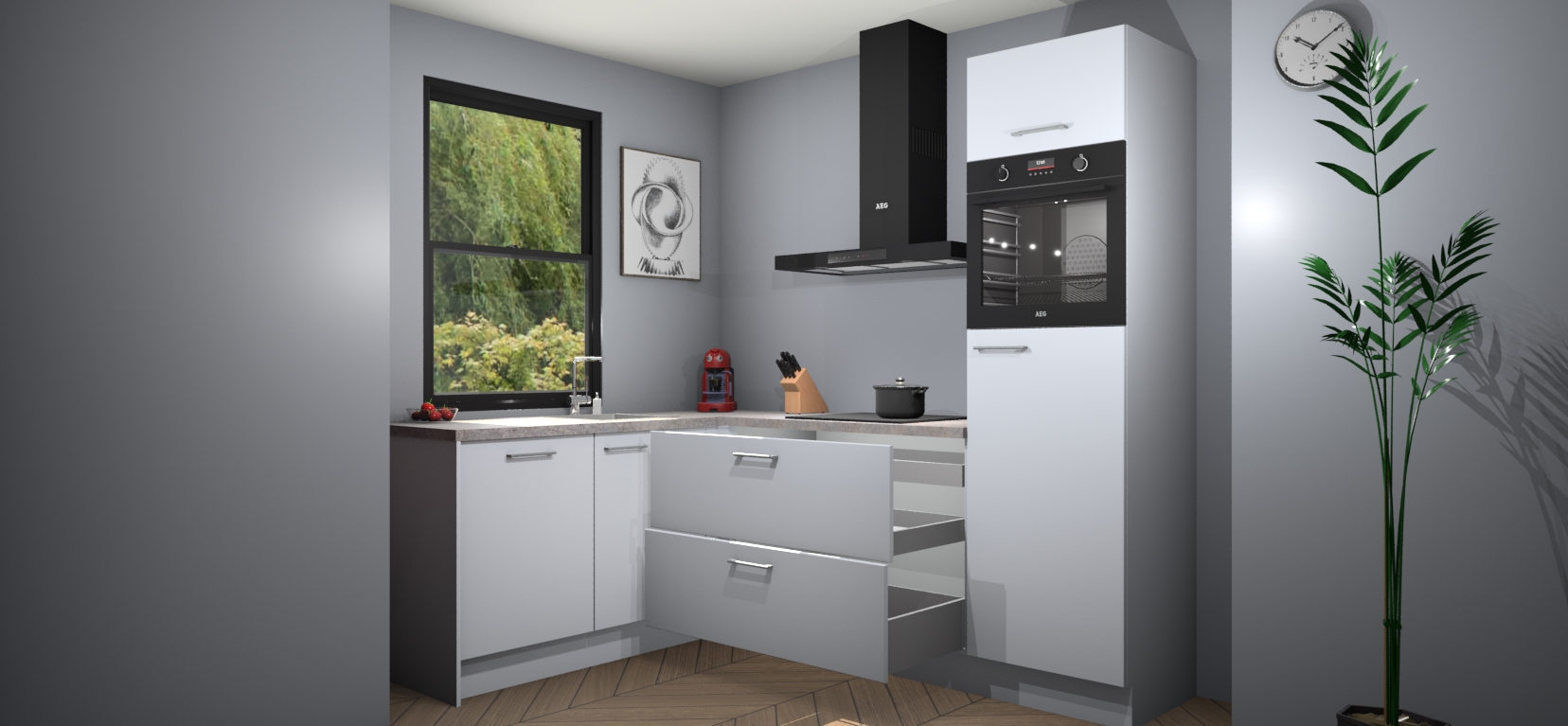 Moedige modernisten! De sneeuwwitte keuken Kinshasa is het perfecte antwoord op al uw keukendromen. Dit geraffineerde, tijdloze ontwerp combineert strakke kasten met hoogglans details zodat u die dure look krijgt zonder het dure prijskaartje. We weten dat planning en uitvoering de sleutels zijn tot een geslaagde keukenrenovatie, dus hebben we ervoor gezorgd dat we vijf inbouwapparaten in ons pakket hebben: een oven, inductiekookplaat, afzuigkap, vaatwasser en koelkast. Deze kunnen na bestelling gemakkelijk worden uitgebreid voor nog meer gemak.