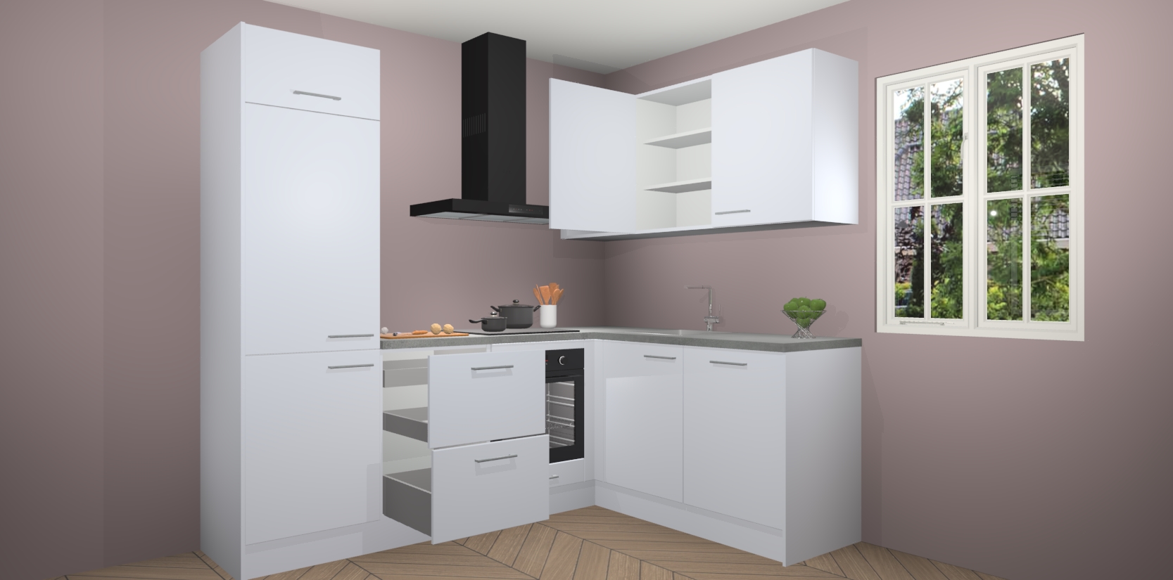 Inclusief plinten, stelpoten en werkblad