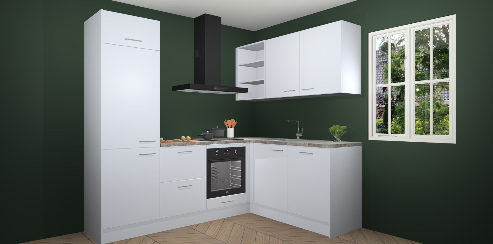 Dit model biedt u voldoende opbergruimte en vijf ingebouwde apparaten: een oven, inductiekookplaat, afzuigkap, vaatwasser en koelkast. Deze apparaten kunnen gemakkelijk worden geüpgrade naar AEG nadat u besteld heeft. De verschillende laden en kastjes bevatten softclose-deuren waardoor ze gezellig dichtvallen met een geruststellend helemaal geruisloos geluid. En dat is nog niet alles! We garanderen ook dat de prijs altijd laag blijft - dus haal nu uw Sneeuwwitte keuken Krakau terwijl het kan.