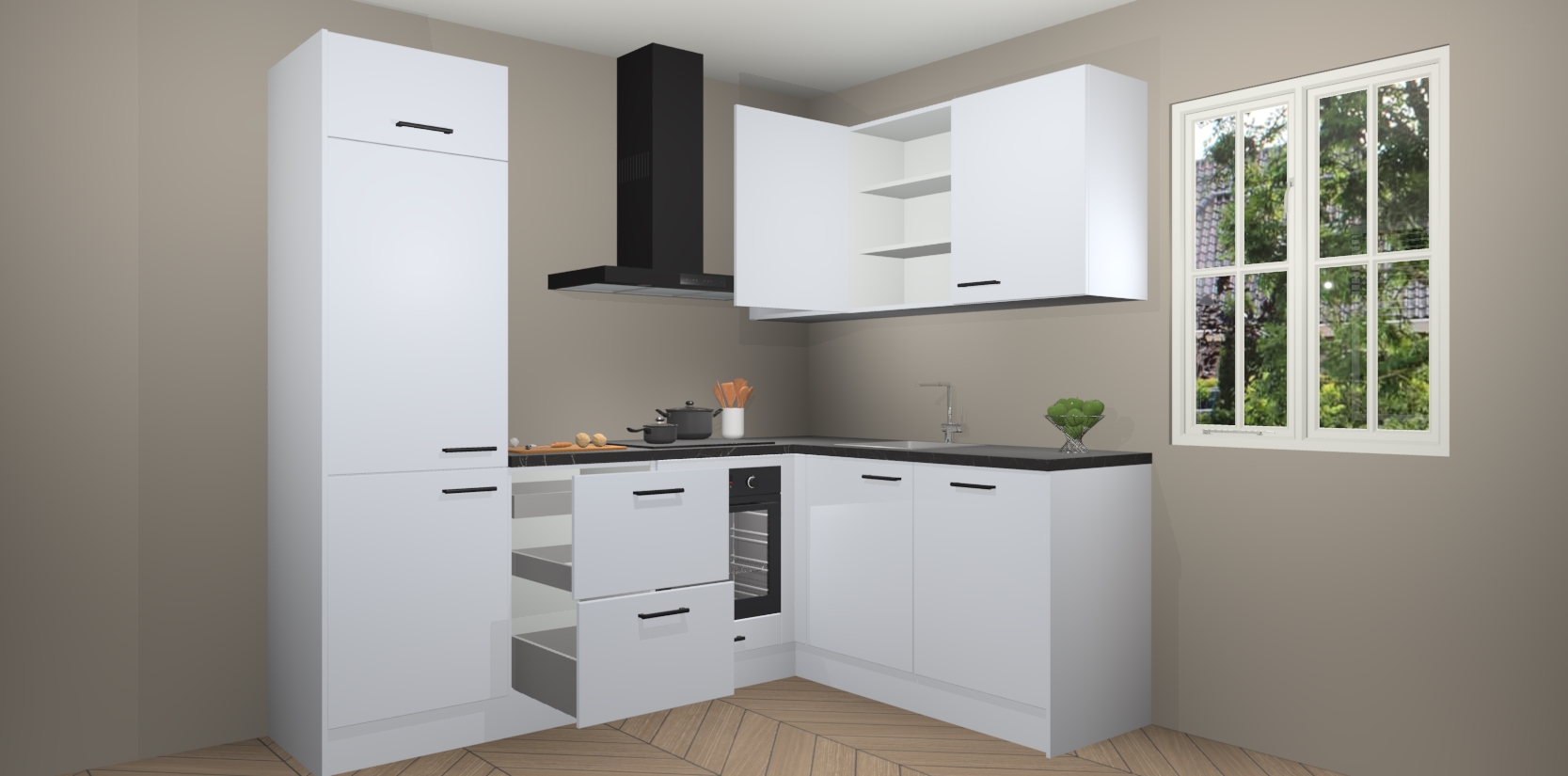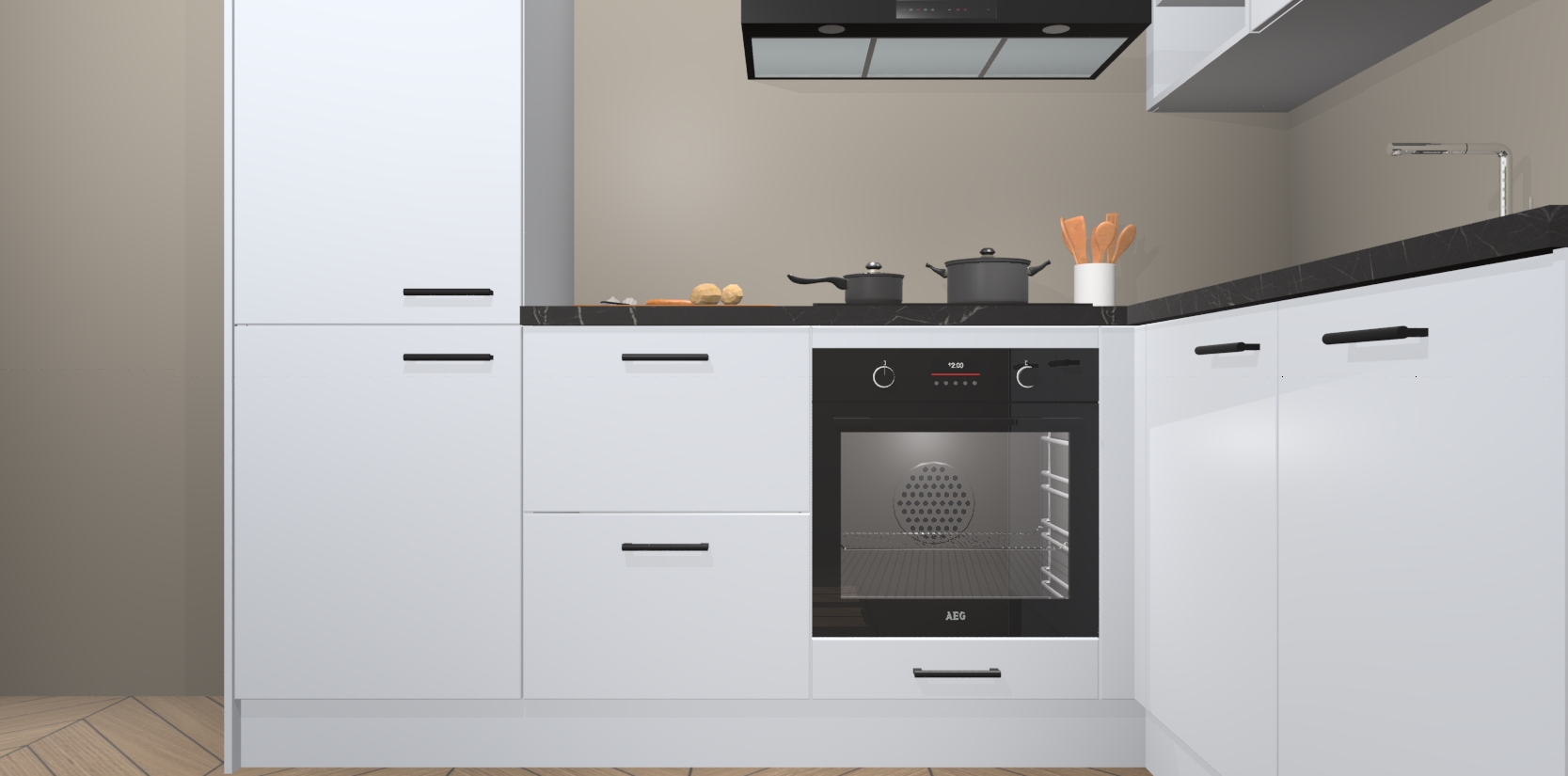 Dit model biedt u voldoende opbergruimte en vijf ingebouwde apparaten: een oven, inductiekookplaat, afzuigkap, vaatwasser en koelkast. Deze apparaten kunnen gemakkelijk worden geüpgrade naar AEG nadat u besteld heeft. De verschillende laden en kastjes bevatten softclose-deuren waardoor ze gezellig dichtvallen met een geruststellend helemaal geruisloos geluid. En dat is nog niet alles! We garanderen ook dat de prijs altijd laag blijft - dus haal nu uw Sneeuwwitte keuken Krakau terwijl het kan.