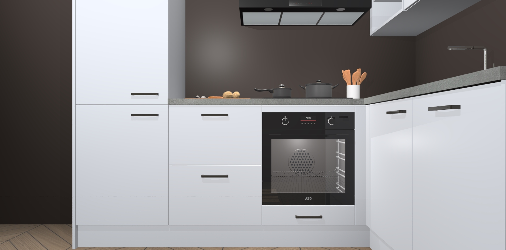 Dit model biedt u voldoende opbergruimte en vijf ingebouwde apparaten: een oven, inductiekookplaat, afzuigkap, vaatwasser en koelkast. Deze apparaten kunnen gemakkelijk worden geüpgrade naar AEG nadat u besteld heeft. De verschillende laden en kastjes bevatten softclose-deuren waardoor ze gezellig dichtvallen met een geruststellend helemaal geruisloos geluid. En dat is nog niet alles! We garanderen ook dat de prijs altijd laag blijft - dus haal nu uw Sneeuwwitte keuken Krakau terwijl het kan.