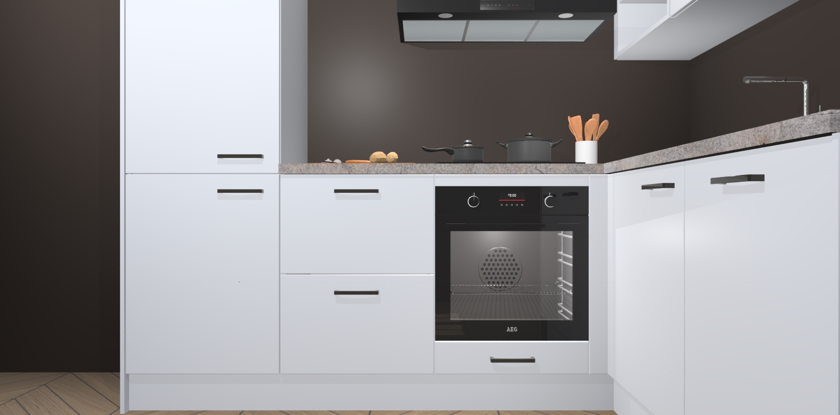 Dit model biedt u voldoende opbergruimte en vijf ingebouwde apparaten: een oven, inductiekookplaat, afzuigkap, vaatwasser en koelkast. Deze apparaten kunnen gemakkelijk worden geüpgrade naar AEG nadat u besteld heeft. De verschillende laden en kastjes bevatten softclose-deuren waardoor ze gezellig dichtvallen met een geruststellend helemaal geruisloos geluid. En dat is nog niet alles! We garanderen ook dat de prijs altijd laag blijft - dus haal nu uw Sneeuwwitte keuken Krakau terwijl het kan.