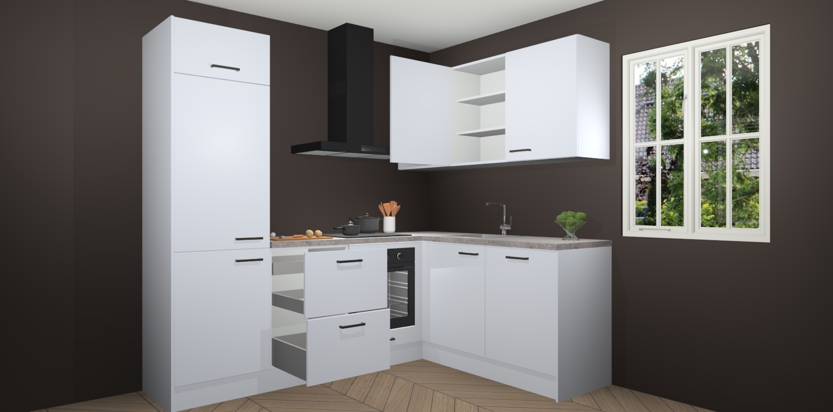 Inclusief plinten, stelpoten en werkblad