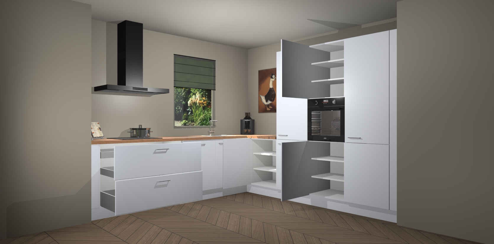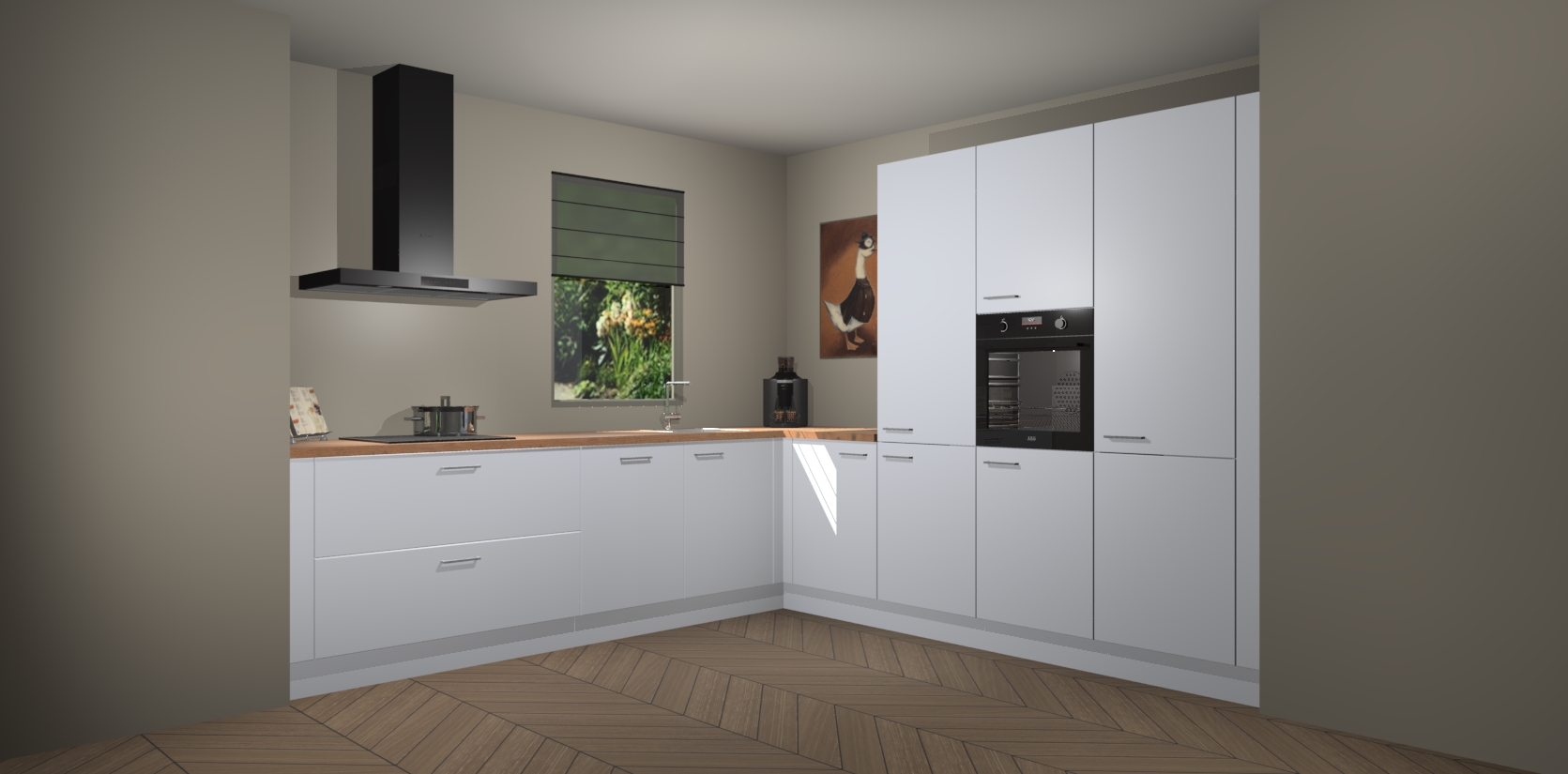 Welkom bij de Sneeuwwitte keuken Laos. Deze prachtige keuken zal de komende jaren het middelpunt van de belangstelling in uw huis zijn. Uitgerust met vijf inbouwapparaten komt u nooit kookgereedschap tekort. Bovendien geeft de warme houtlook elke ruimte een uitnodigende en tijdloze uitstraling.