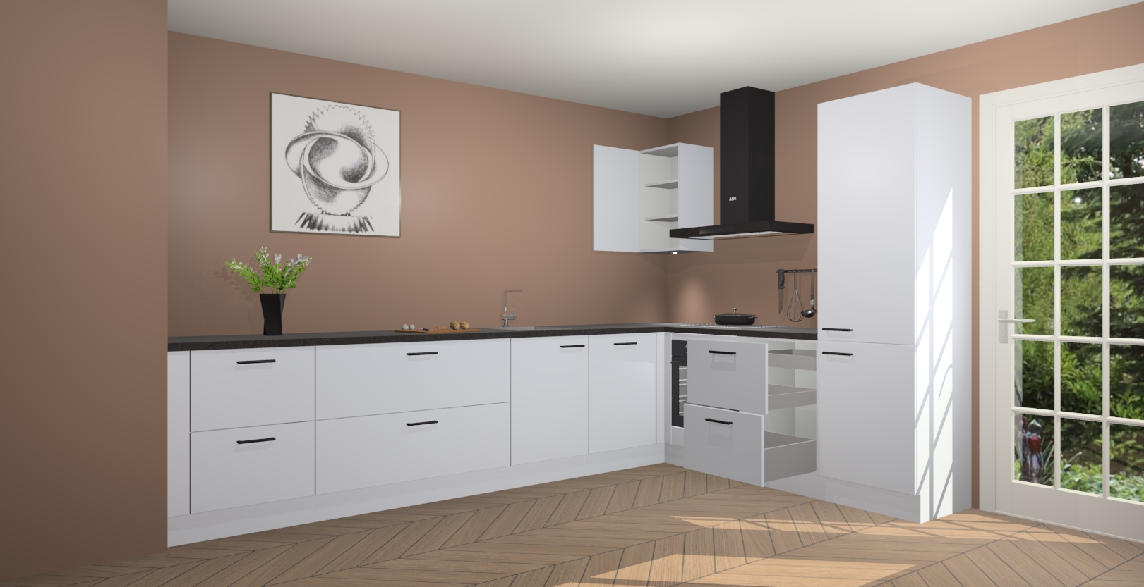 In deze box zijn alle kleuren verzameld van de deuren en werkbladen. Vraag de gratis kleurenbox aan en kijk thuis rustig verder!