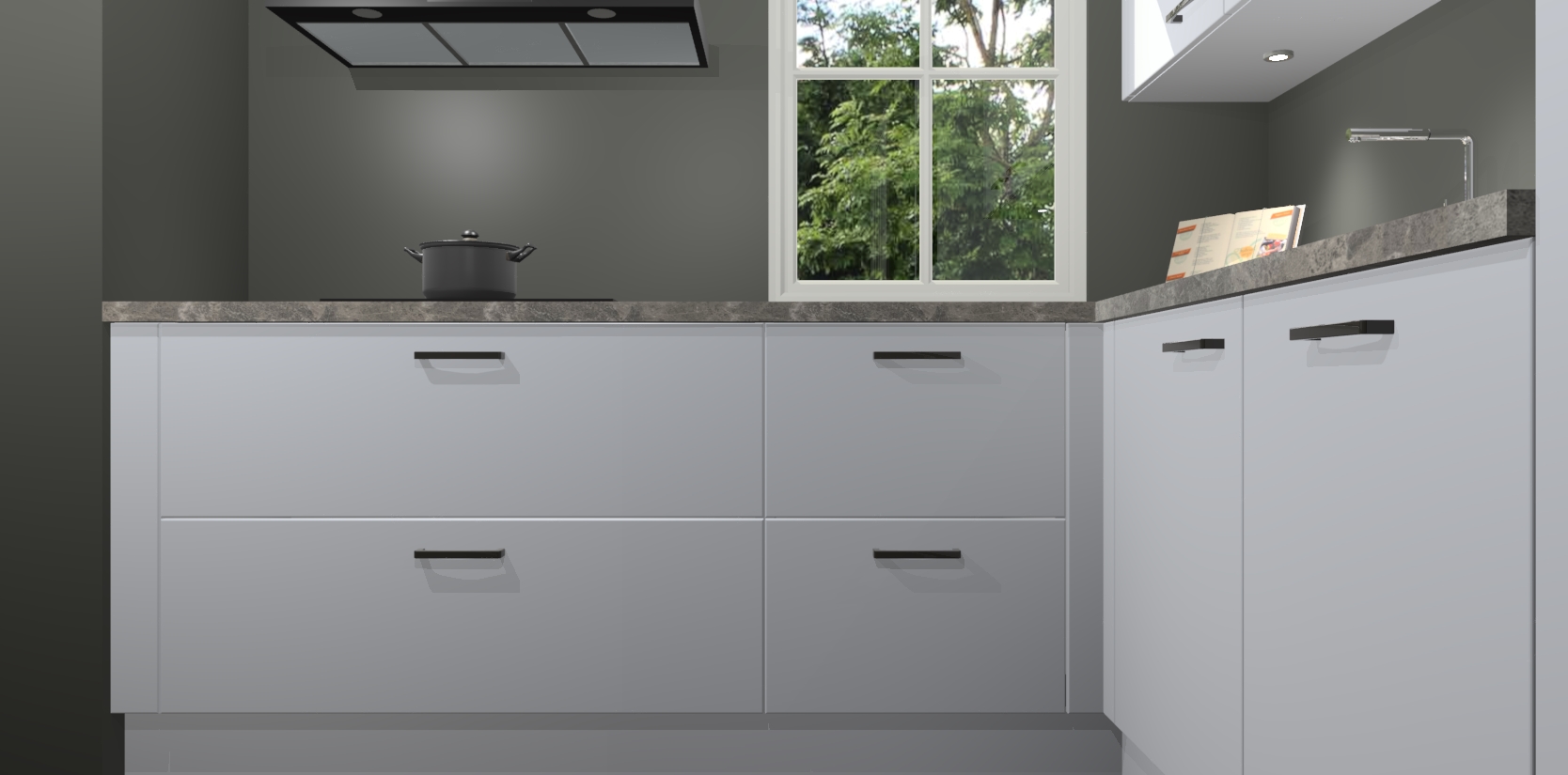 In deze box zijn alle kleuren verzameld van de deuren en werkbladen. Vraag de gratis kleurenbox aan en kijk thuis rustig verder!