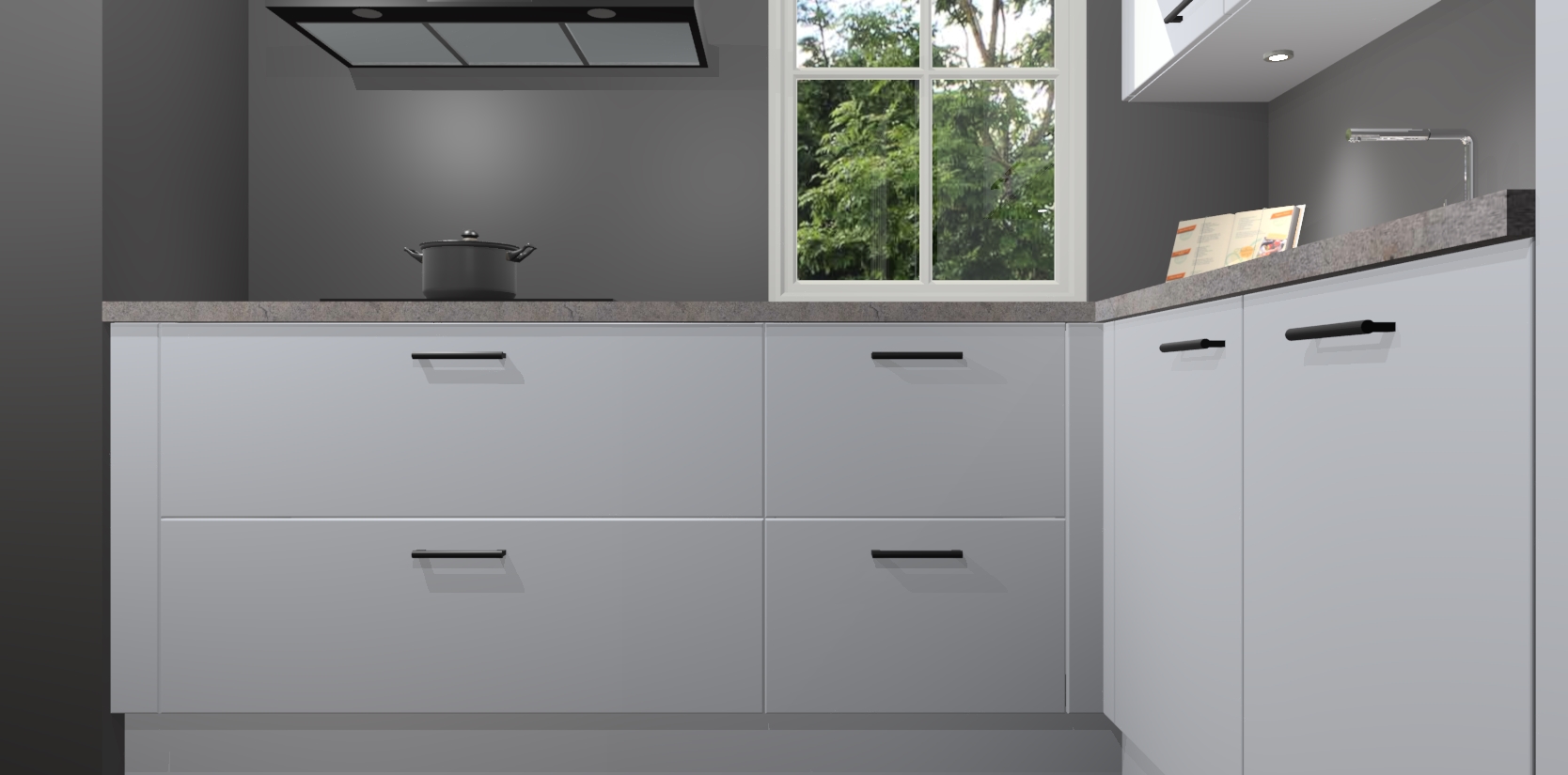 In deze box zijn alle kleuren verzameld van de deuren en werkbladen. Vraag de gratis kleurenbox aan en kijk thuis rustig verder!