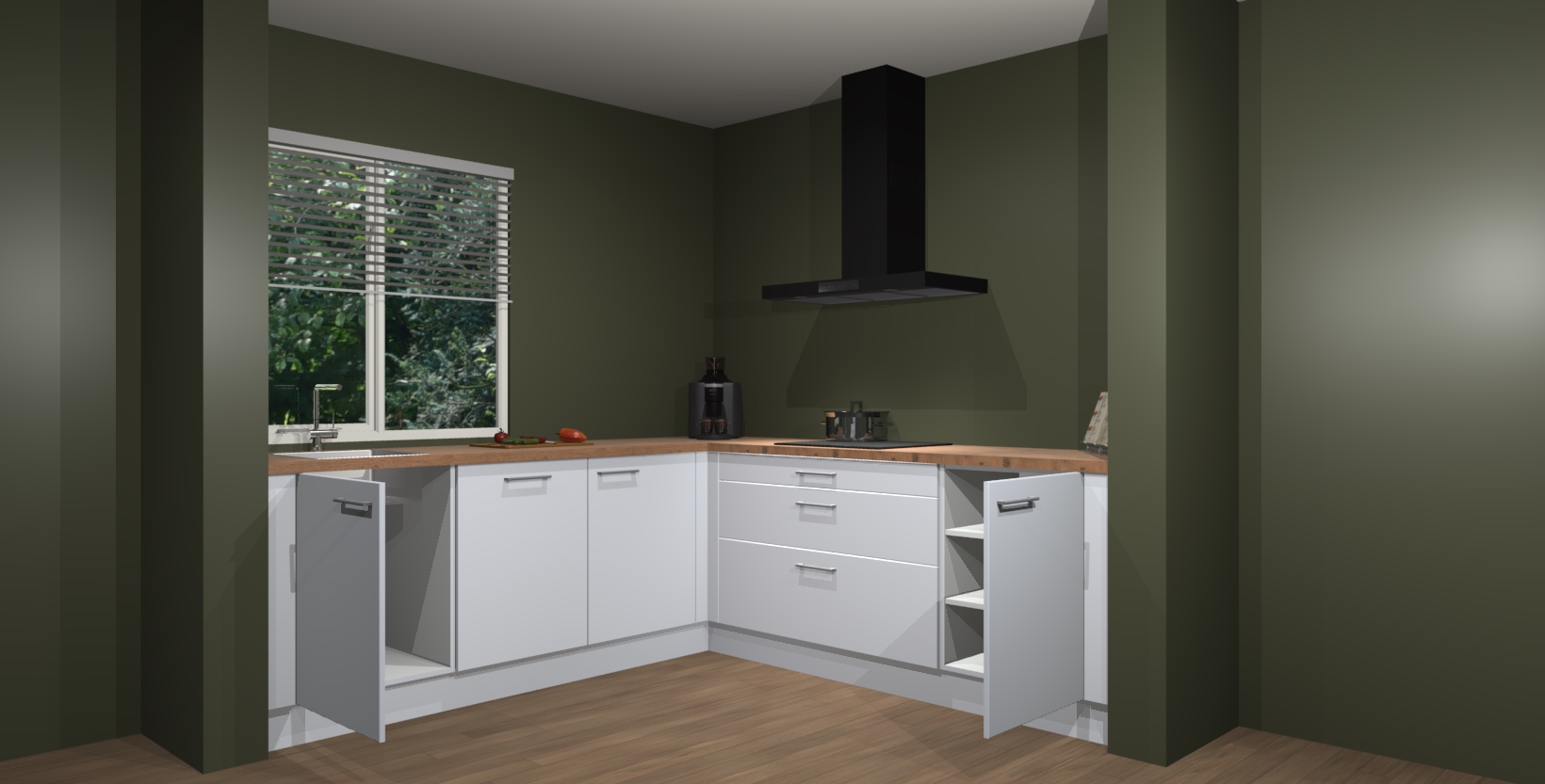 In deze box zijn alle kleuren verzameld van de deuren en werkbladen. Vraag de gratis kleurenbox aan en kijk thuis rustig verder!