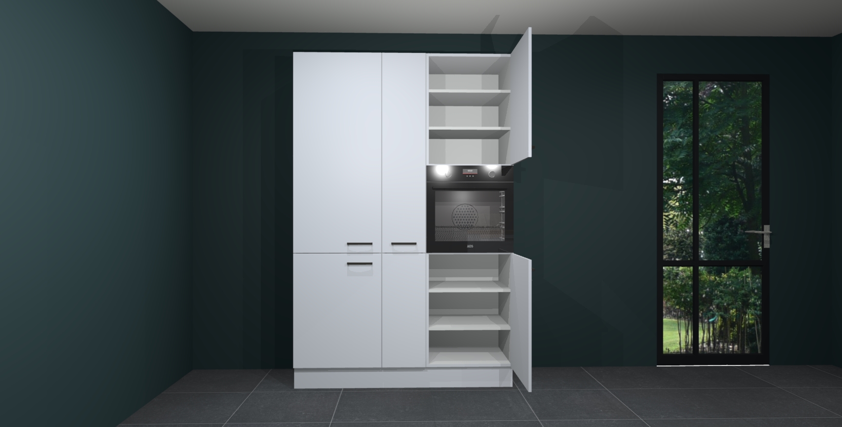 Met een modern, tijdloos design en ruime opslagruimte, zult u zich in no-time thuis voelen in uw nieuwe keuken. Uw leven wordt eenvoudiger met de soft-close deuren die voor het ultieme stille comfort zorgen - geen geluid dat u stoort terwijl u kookt. Ook is de keuken voorzien van 5 ingebouwde apparaten: een oven, inductie kookplaat, afzuigkap, vaatwasser en koelkast. Deze kunnen gemakkelijk na bestelling worden bijgewerkt naar AEG - waardoor uw luxe ervaring compleet is.