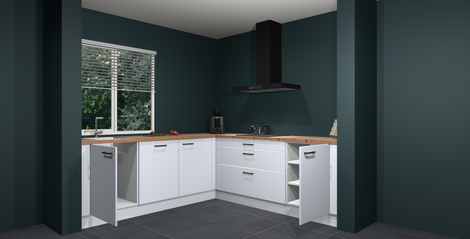 In deze box zijn alle kleuren verzameld van de deuren en werkbladen. Vraag de gratis kleurenbox aan en kijk thuis rustig verder!