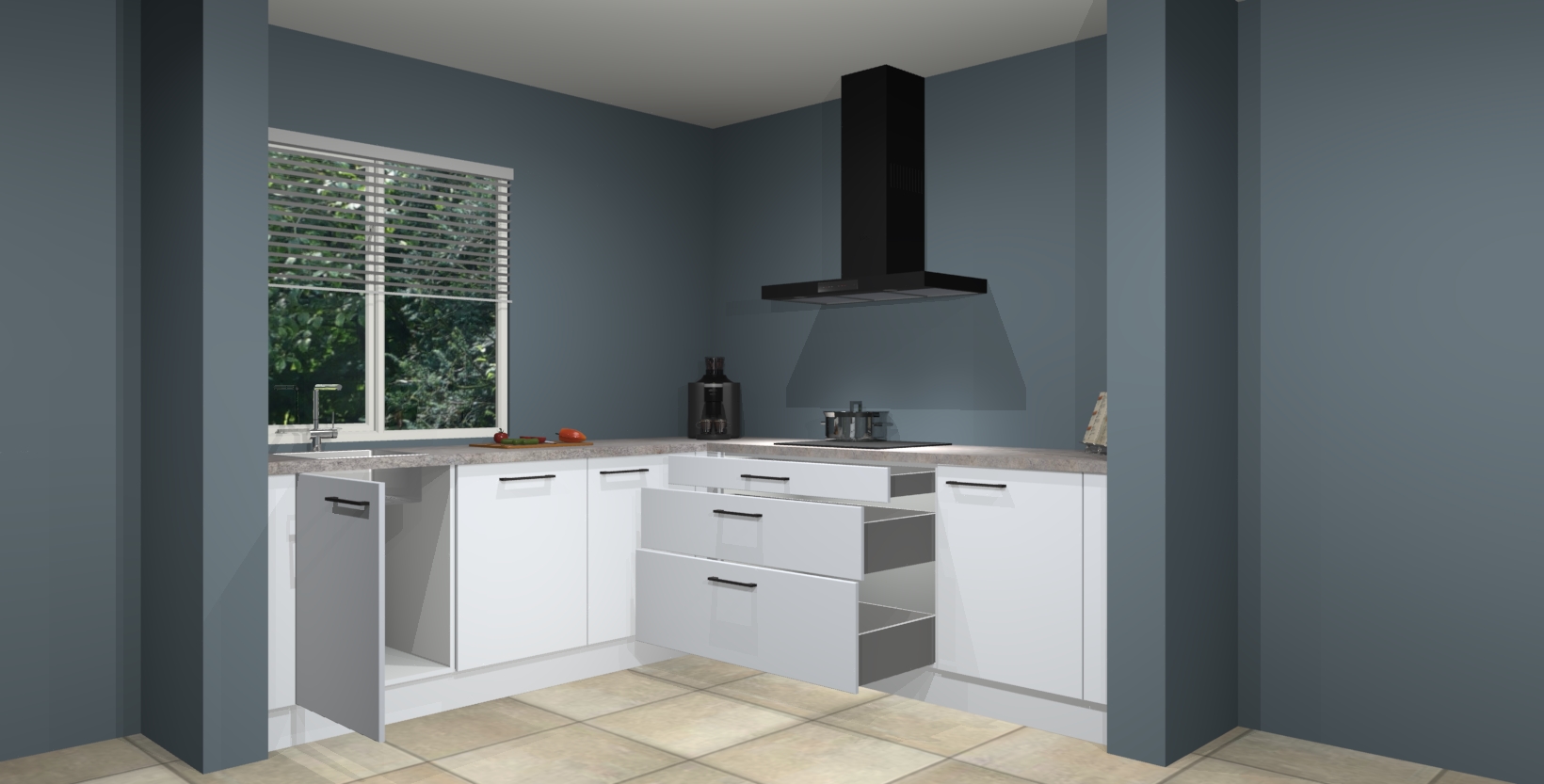 - Bij een hoekwerkblad zijn de hoeken in gevreesd en op maat gemaakt
